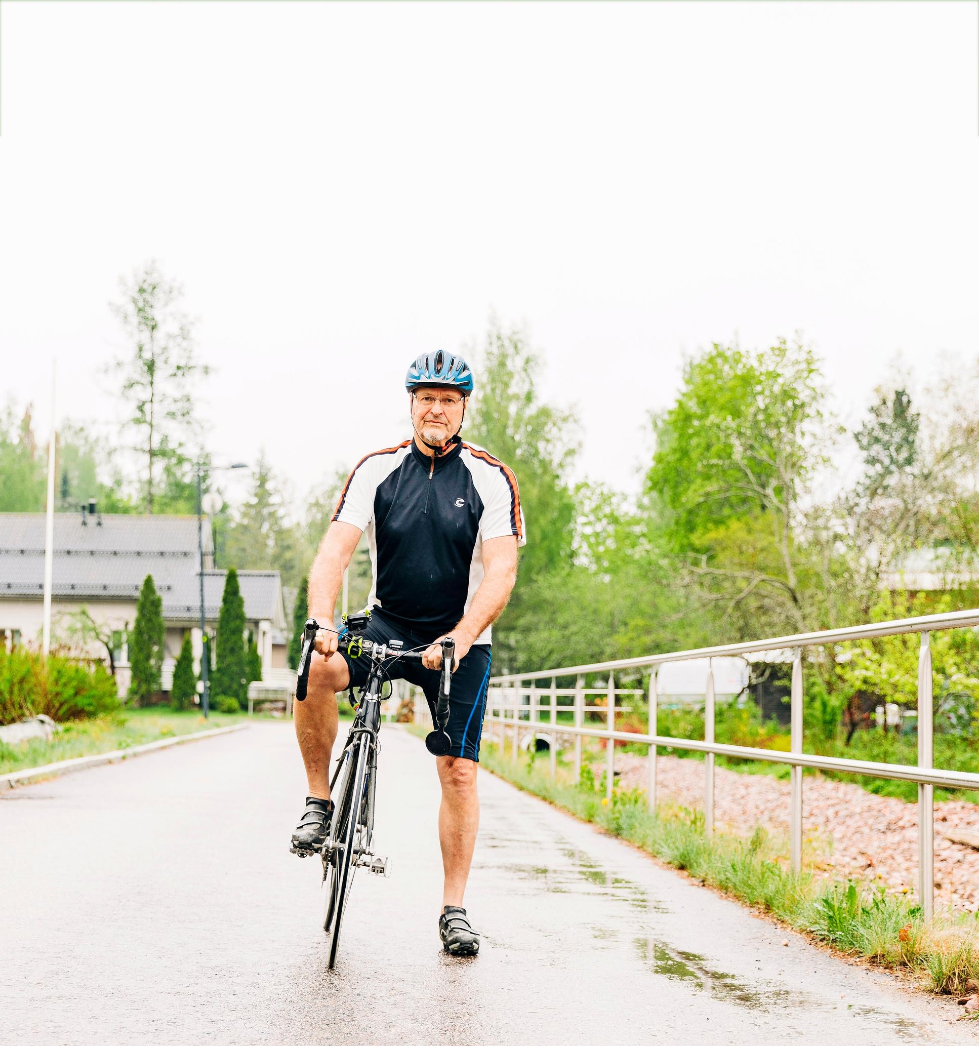 Vielä neljä vuotta sitten saatoin tehdä aamulla 60 kilometrin hiihtolenkin ja sen päälle uida iltapäivällä kuusi kilometriä. Viimeiset 1,5 kilometriä sai pohkeet kramppaamaan, mutta sitkeänä sissinä en antanut periksi. Edellisenä syksynäkin tein 40–80 kilometrin pyöräretkiä tyttäreni ja hänen miehensä kanssa.