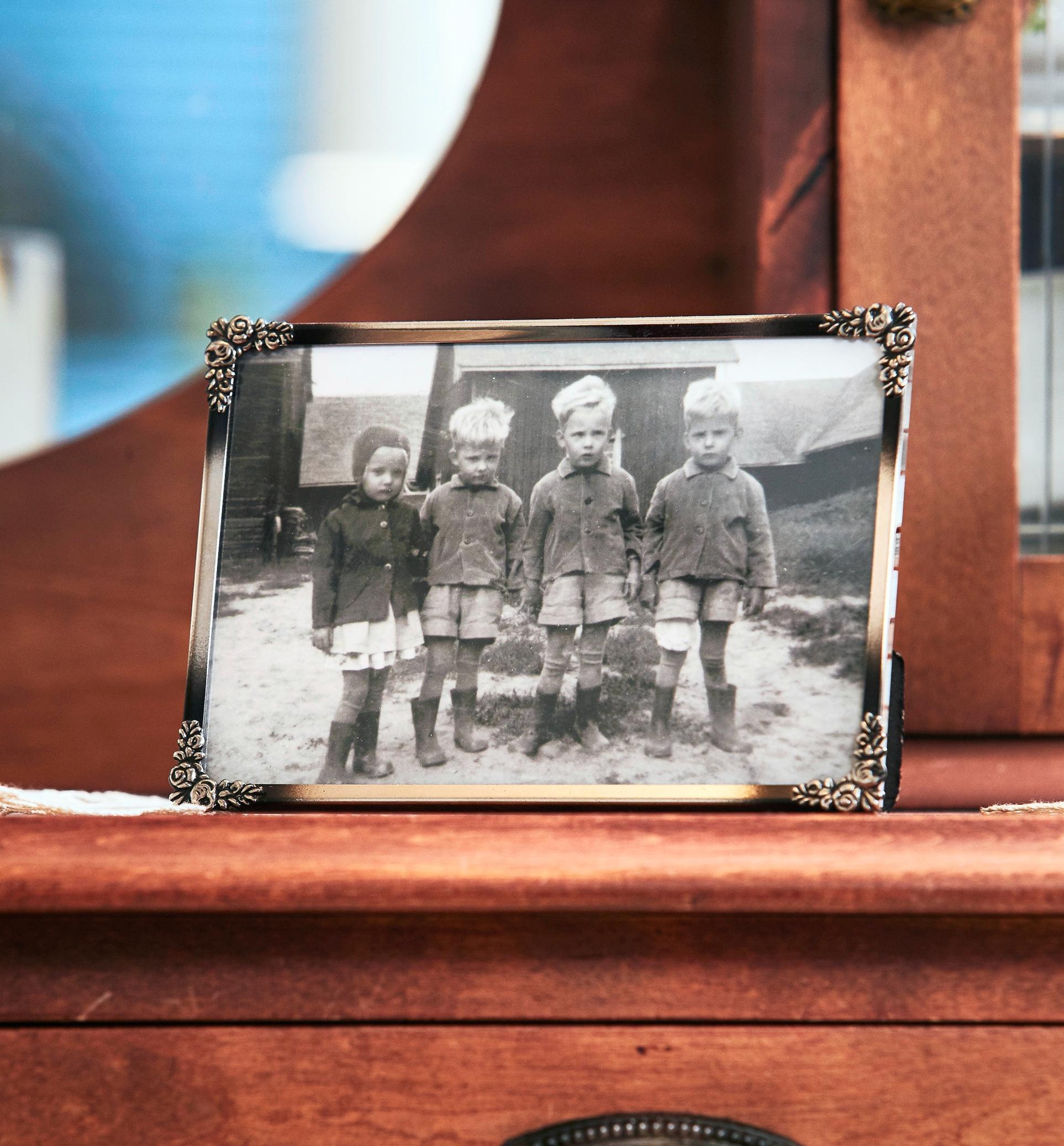 – Vanhemmilla ei ollut kameraa, mutta naapuri oli ottanut meistä kuvan ja saimme sen jokainen 50-vuotislahjaksi. Järkytyin kuvasta, järkytyin vakavuudestamme, Helena Jouppila sanoo.