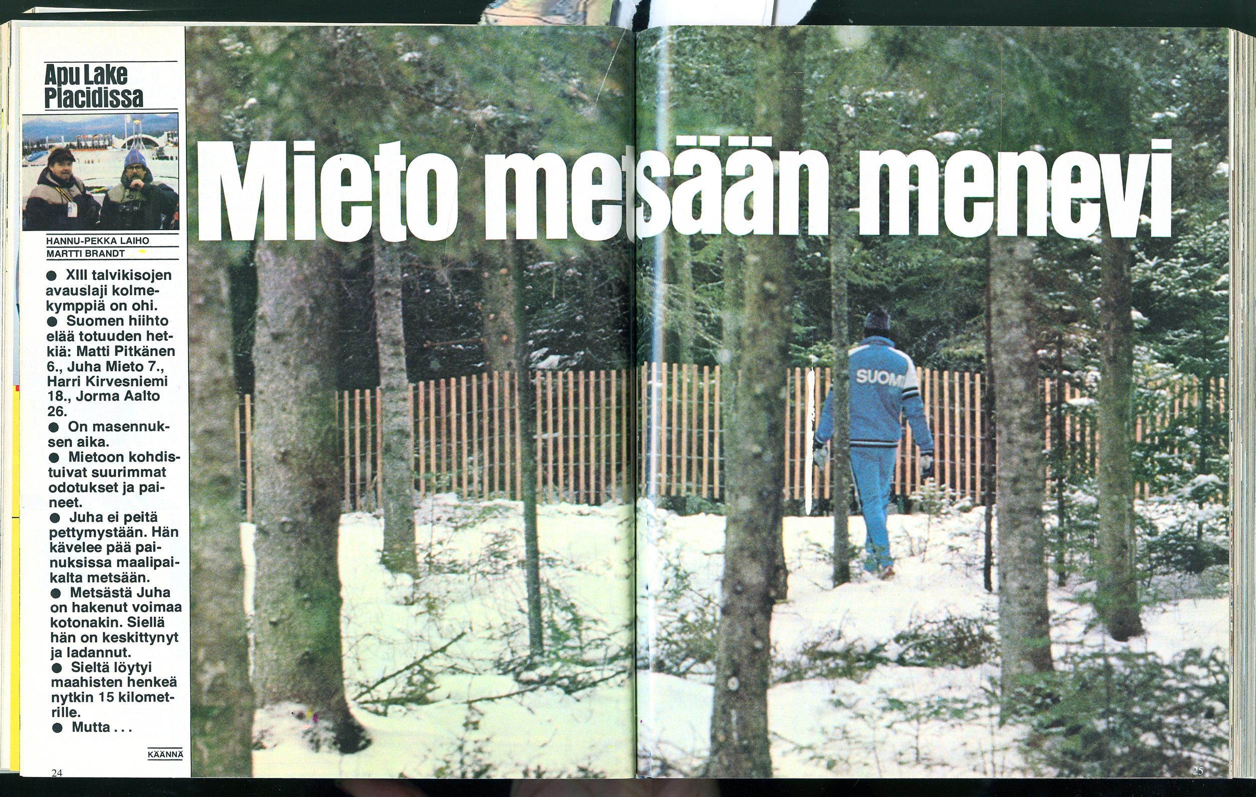 Jännitys kotikatsomoissa oli ollut alusta asti korkealla, mutta nyt se oli katossa. Nyt jos koskaan. Vanhemman polven hiihtosuuruudet Kalevi Oikarainen ja Hannu Taipale olivat jo 1971 julistaneet, että Mieto olisi uusi kansainvälinen tähti Suomen hiihtotaivaalla. Mieto oli ollut jo vuosikaudet suomalaisen hiihtokansan lempilapsi.