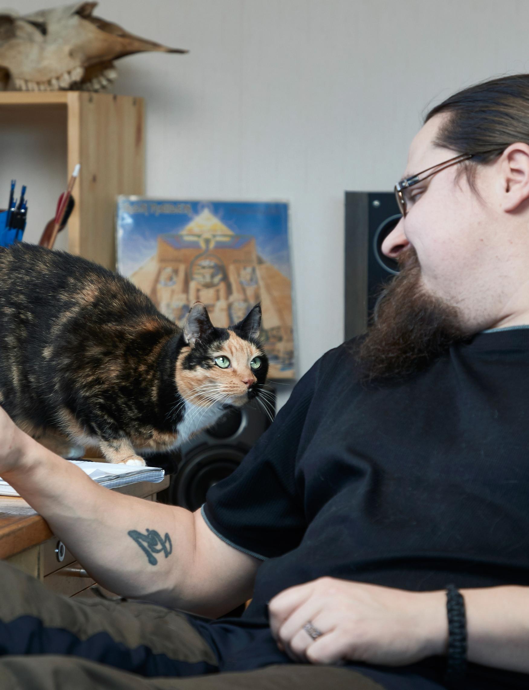 Eteisessä on vastassa Vesan yhdeksänvuotias kissa Kaisla. Se pakenee minua makuuhuoneeseen.