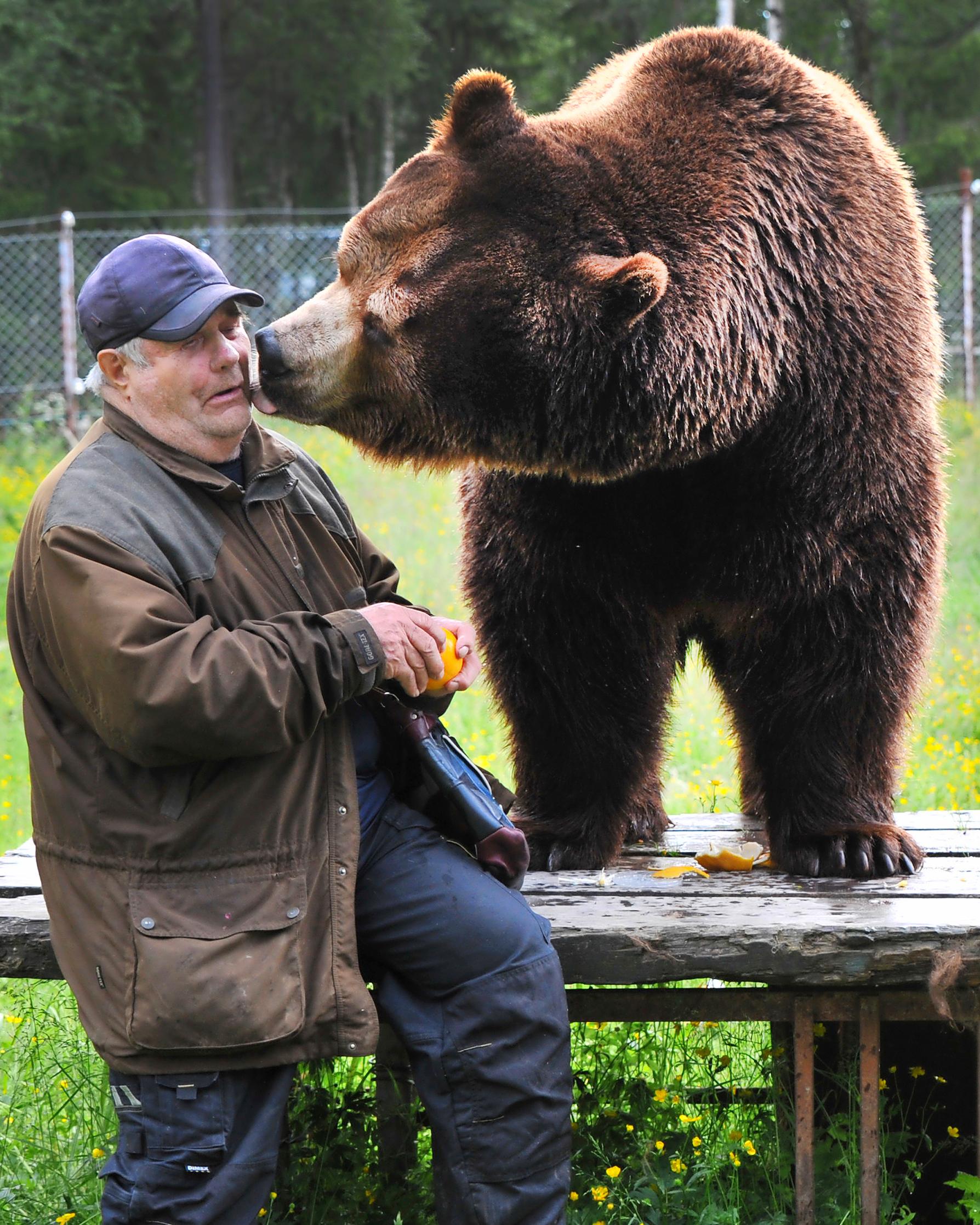 ”Juuso syntyi täällä Kuusamon Suurpetokeskuksessa keväällä yhdeksäntoista vuotta sitten. Syntyessään se painoi vähän yli kaksi kiloa, nykyään enimmillään 483 kiloa. Juuso on maailman hienoimpia karhuja: kookas ja ystävällinen. Meille se on kuin perheenjäsen.