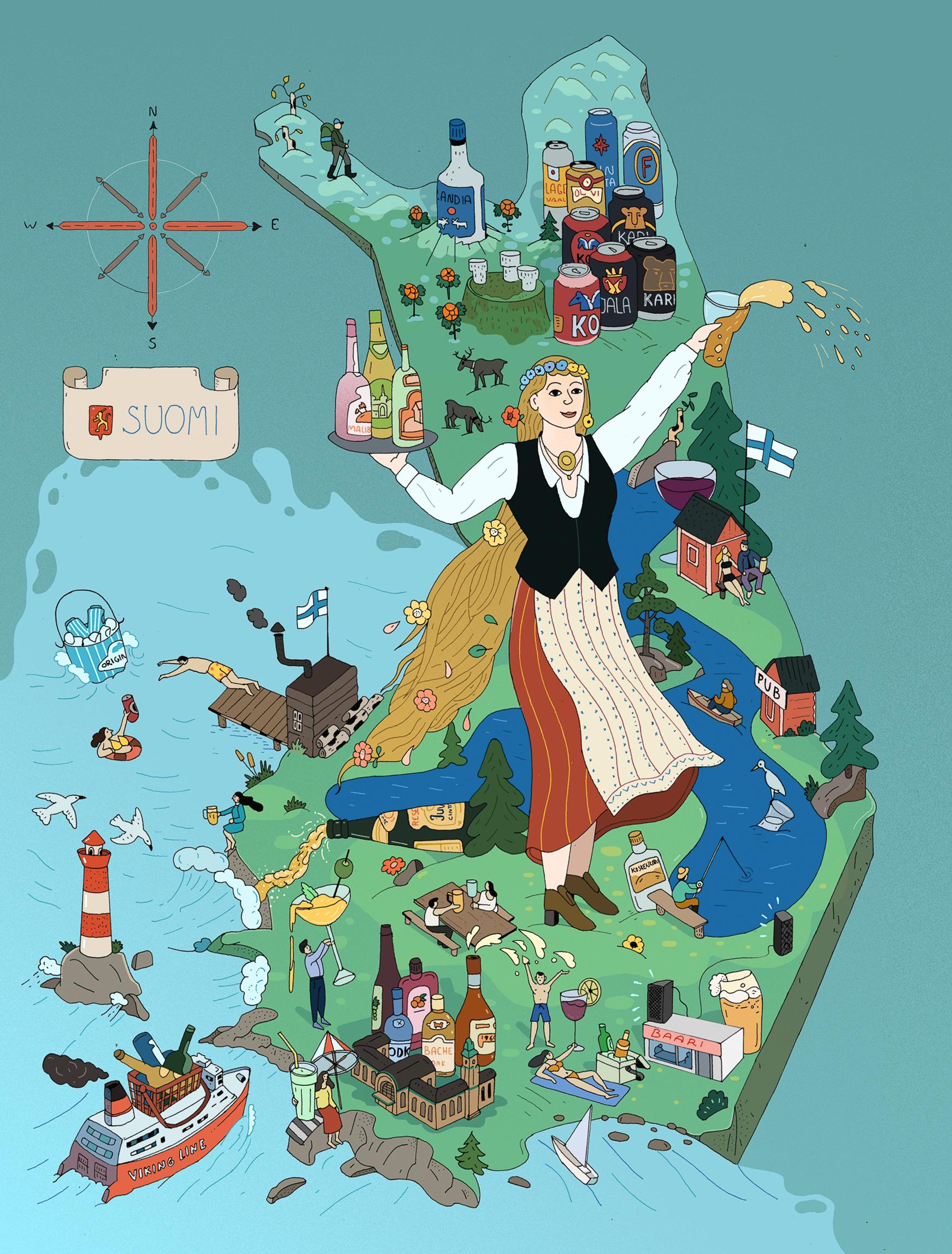 Suomalainen juo kotonaan. Usein puolisonsa kanssa. Eniten olutta, mutta harvoin ruoan kanssa. Alkoholijuoma liittyy suomalaisella niihin tilanteisiin, kun arki vaihtuu vapaaksi.