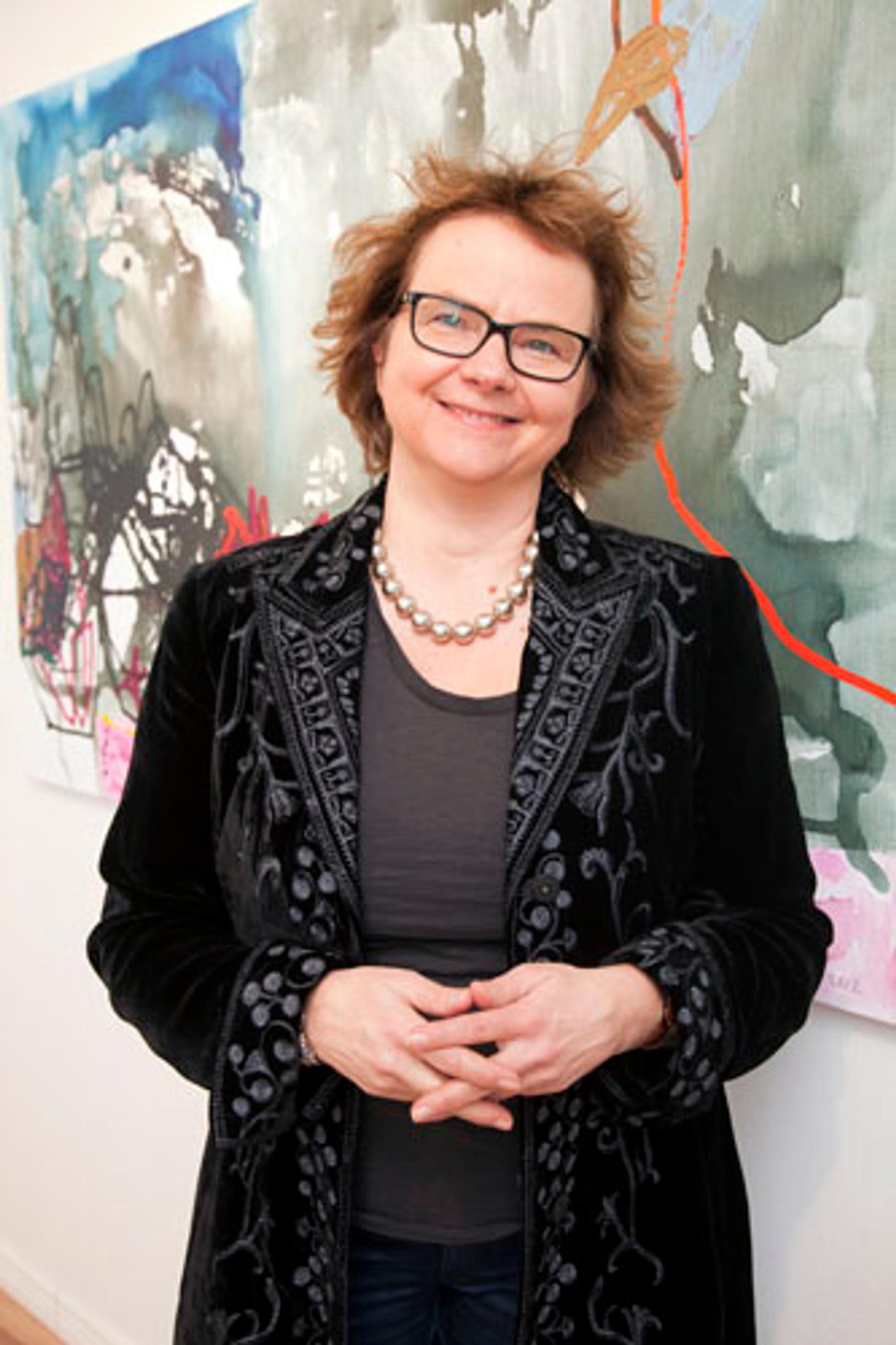 Laura Kolbe puhui naisten työstä miehen rinnalla ja riensi sitten oppilaittensa iltaan, jossa aiheena olivat uskonnolliset naishahmot ja kurtisaanit.