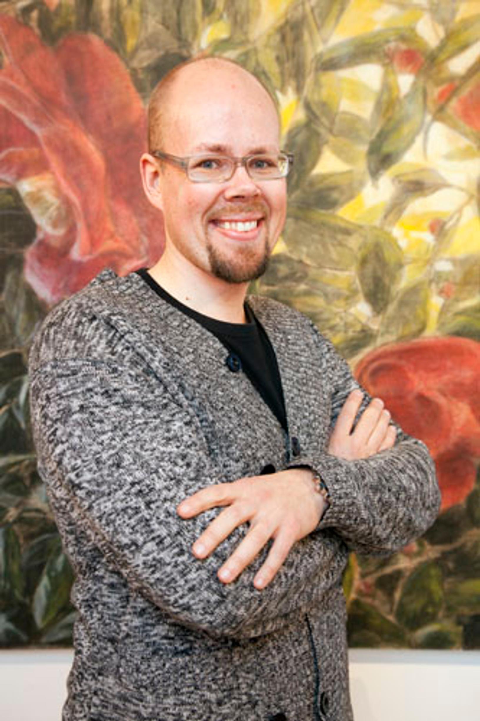 Tero Annannolli tekee taidetta muun muassa tussiin kastetulla grillitikulla. Takana on rupeamia Salmelassa ja Firenzessä, edessä matka Roomaan. Taustalla Vuosaaressa 2011 valmistunut Salainen puutarha.