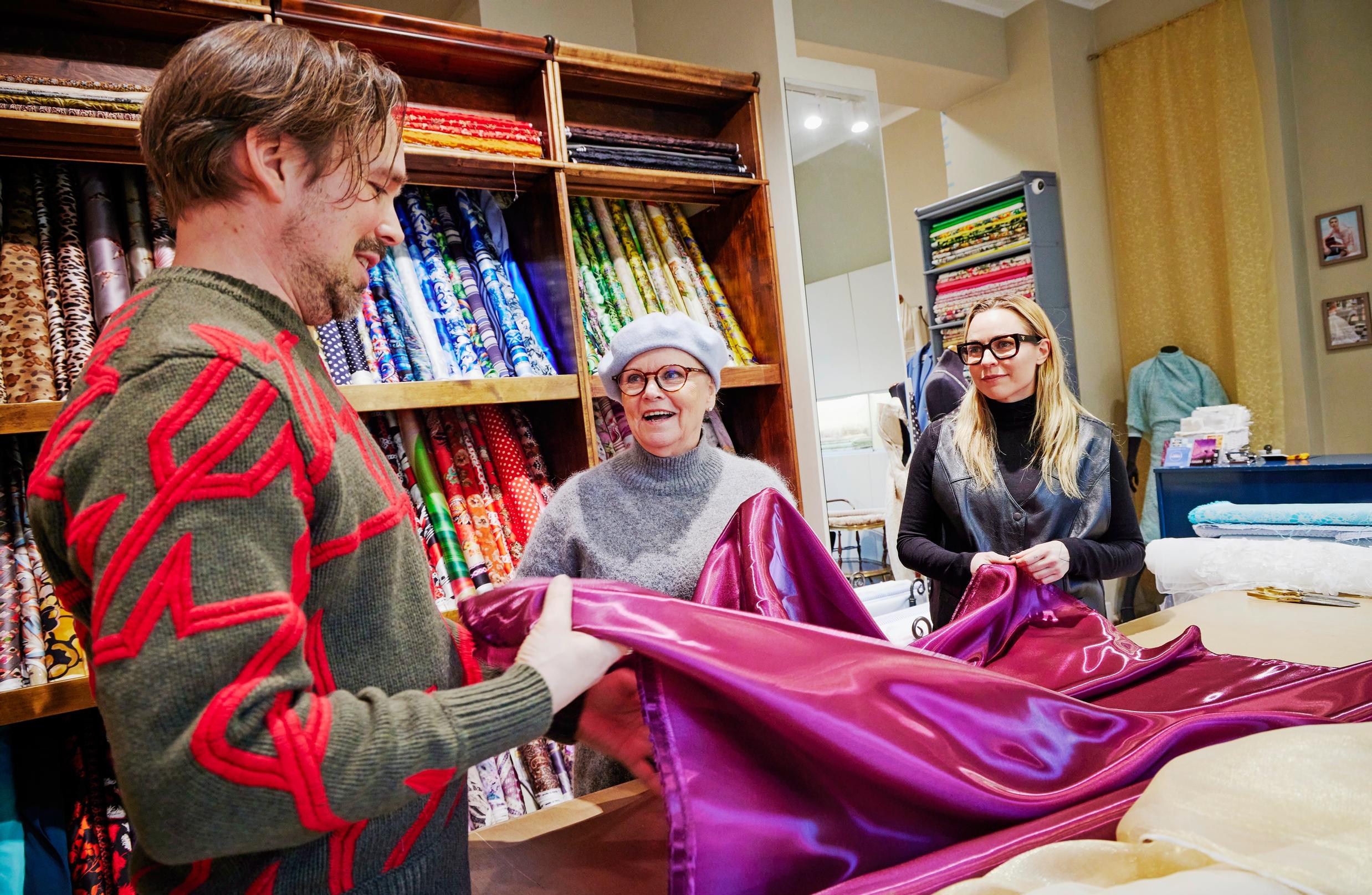 Kultaa ja väriä, silkkisatiinia, kultaista organzaa, valkoisia paljetteja… Muurimäki luettelee Olympiastadionilla Katri Helenan yllä nähtävien asujen materiaaleja. Se on niin lähellä luksusta kuin Katri Helenan päällä voi olla.
