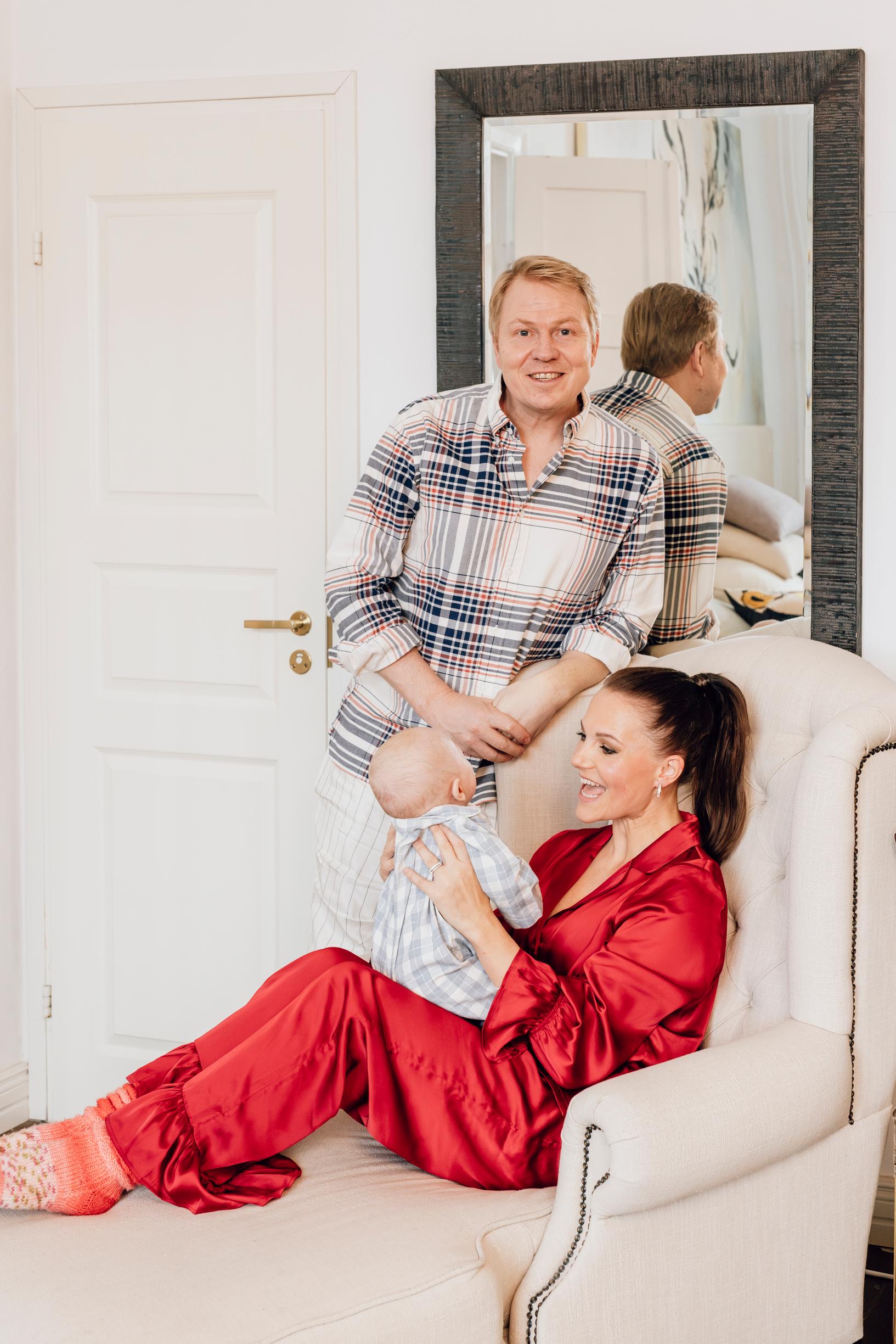 – Minulla on ollut lempeä sisäänajo perhe-elämään. Nyt kun lapsia on täällä samaan aikaan kolme, se tuntuu luonnolliselta ja hyvältä. Elin tarpeeksi kauan yksinäistä tanssijan elämää. Tämä on kuin yö ja päivä siihen verrattuna. Olen todella onnellinen juuri nyt, Katri sanoo ja hipsuttaa Akin syliin nukahtanutta Keviniä.