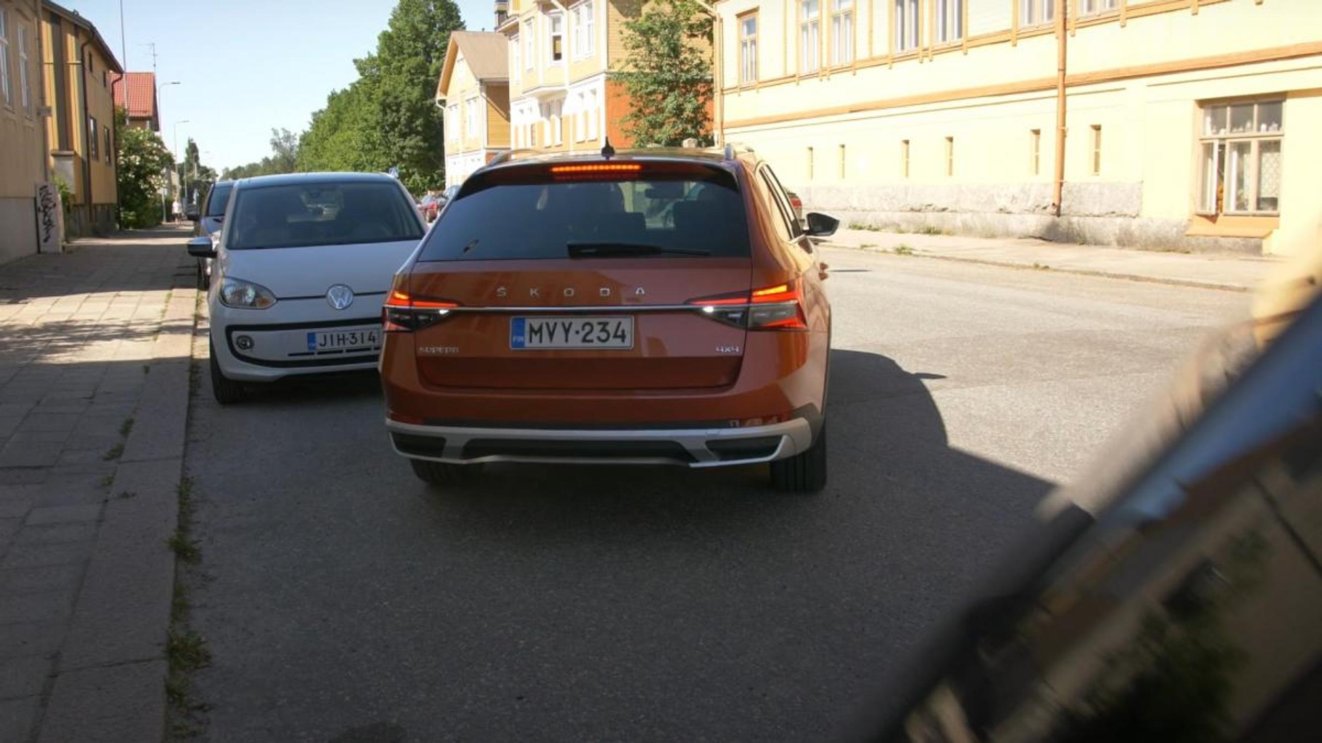 - Lopuksi voit tarpeen mukaan vielä siirtää autoa hieman eteenpäin, jotta se saadaan keskelle ruutua. Samalla voi suoristaa autoa, mikäli se ei ehtinyt kääntyä kadun reunakiven suuntaiseksi peruutettaessa.