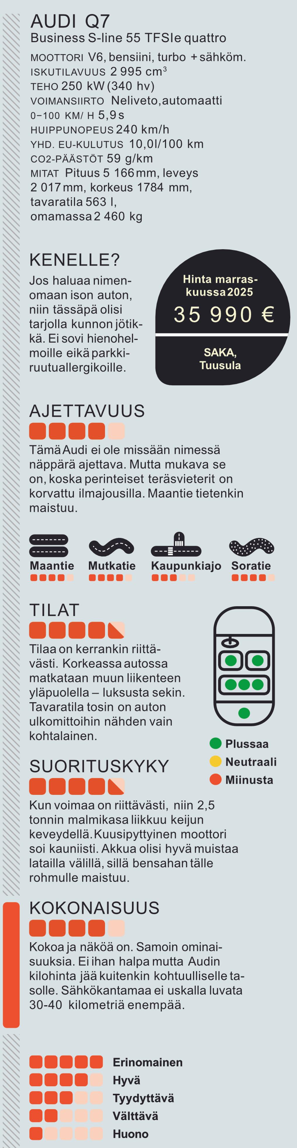 Audi Q7 vm. 2022 – Jos haluaa ison auton, niin tässä olisi kunnon jötikkä – Ei hienohelmoille eikä parkkiruutuallergikoille