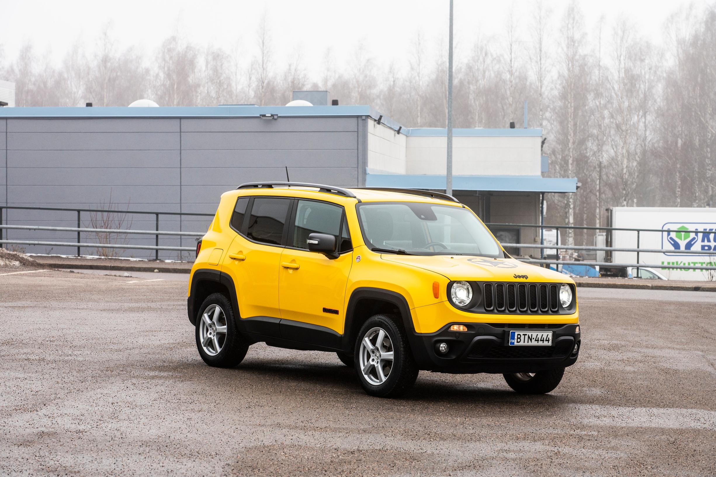 Autorivistön hännillä näkyi jotain keltaista. Oli pakko lähteä saman tien tarkistamaan, että olisiko koukussa jotain meille sopivaa. Ja kyllä nyt nappasi: räikeän keltainen auto oli Jeep Renegade Trailhawk, ja hintakin juuri sopivat 19 800 euroa.