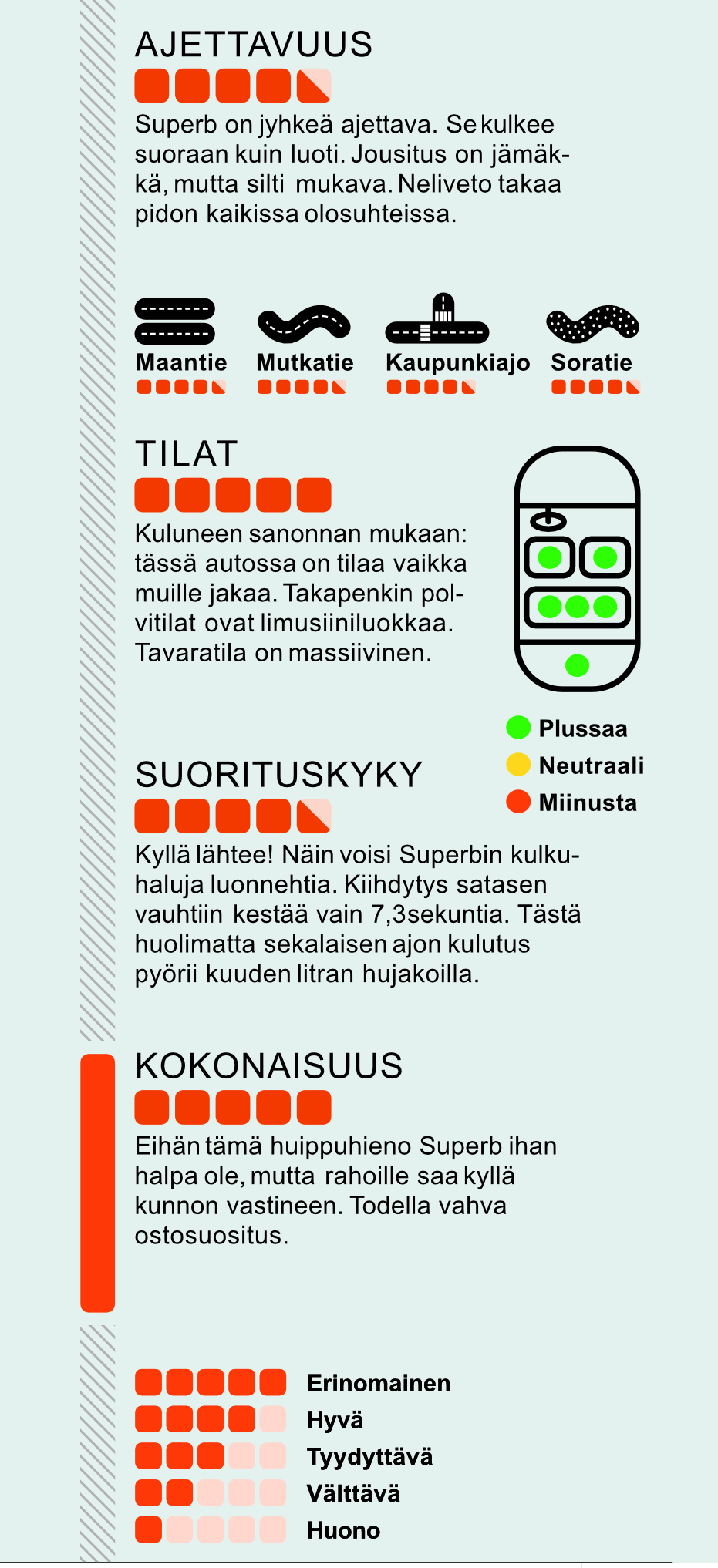 Tässä on auto ostajalle, joka tarvitsee tilaa, mutta ei kuitenkaan halua hissutella. Hieno laite, mutta ei liian pramea.