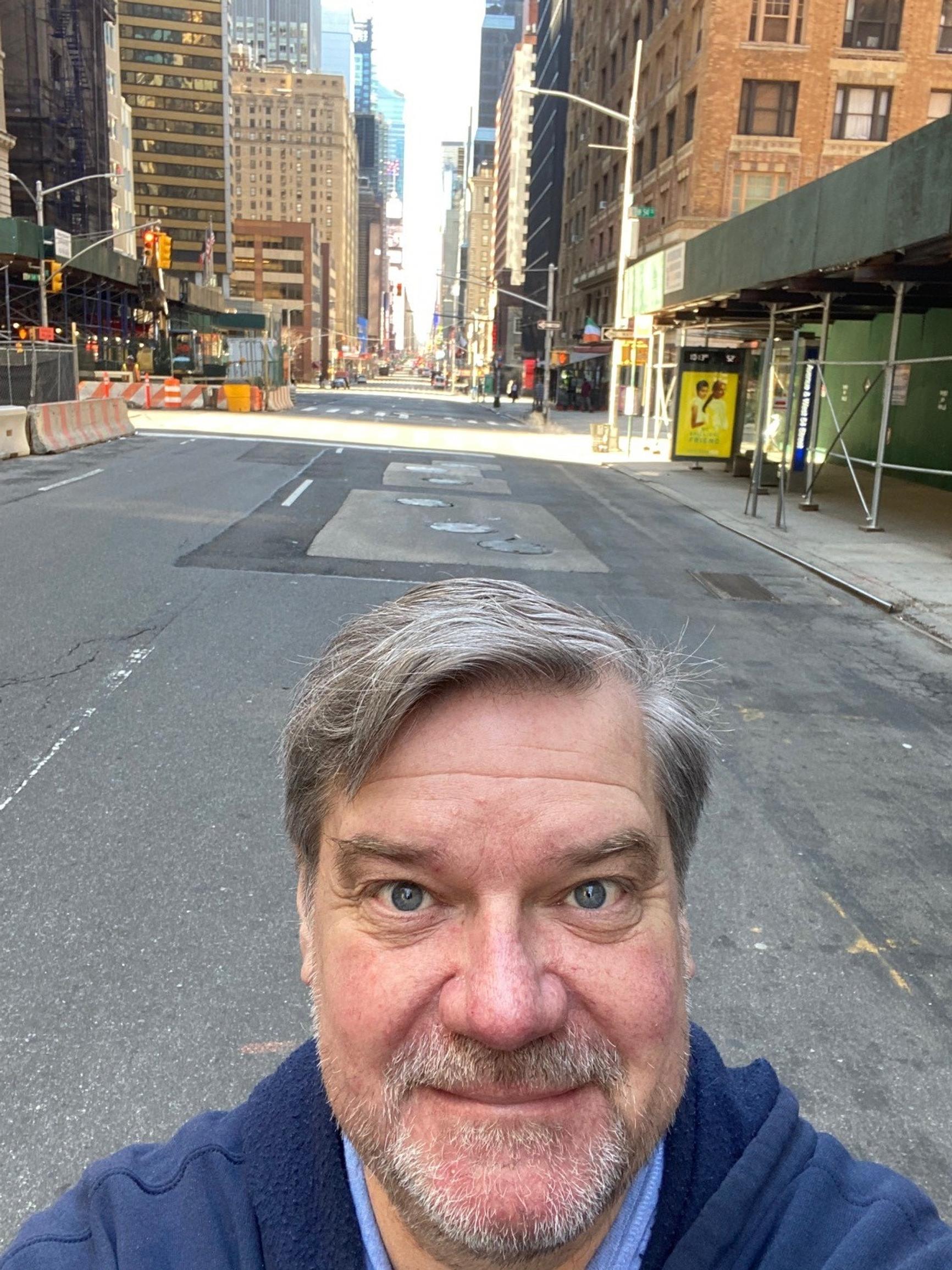 Aloituskuva: Lasse Leskisen selfiestä välittyy, miten New Yorkin kadut ovat tyhjentyneet.