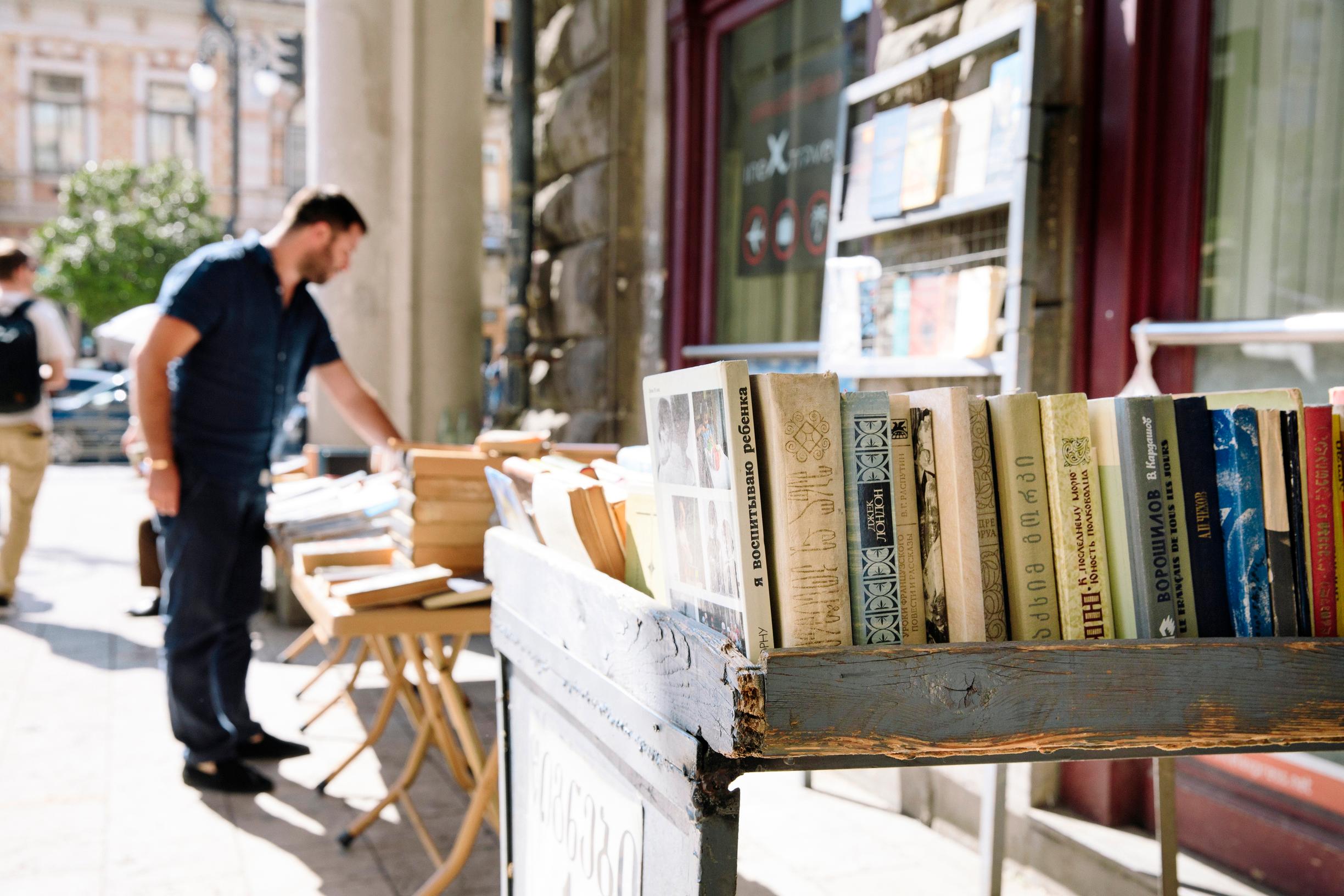 Marjanishvilin metroaseman edessä on katuantikvariaatti, jonka hyllyt notkuvat ajan patinoimien teosten painosta. Kirjojen myynti kadulla on tyypillistä Tbilisissä. Siellä täällä näkyy vanhojen pappojen pitämiä puoteja. Usein ne ovat spontaaneja kirppishenkisiä toimipisteitä, joissa kadulle tai kivimuurien päälle on levitetty vanhoja kirjoja.