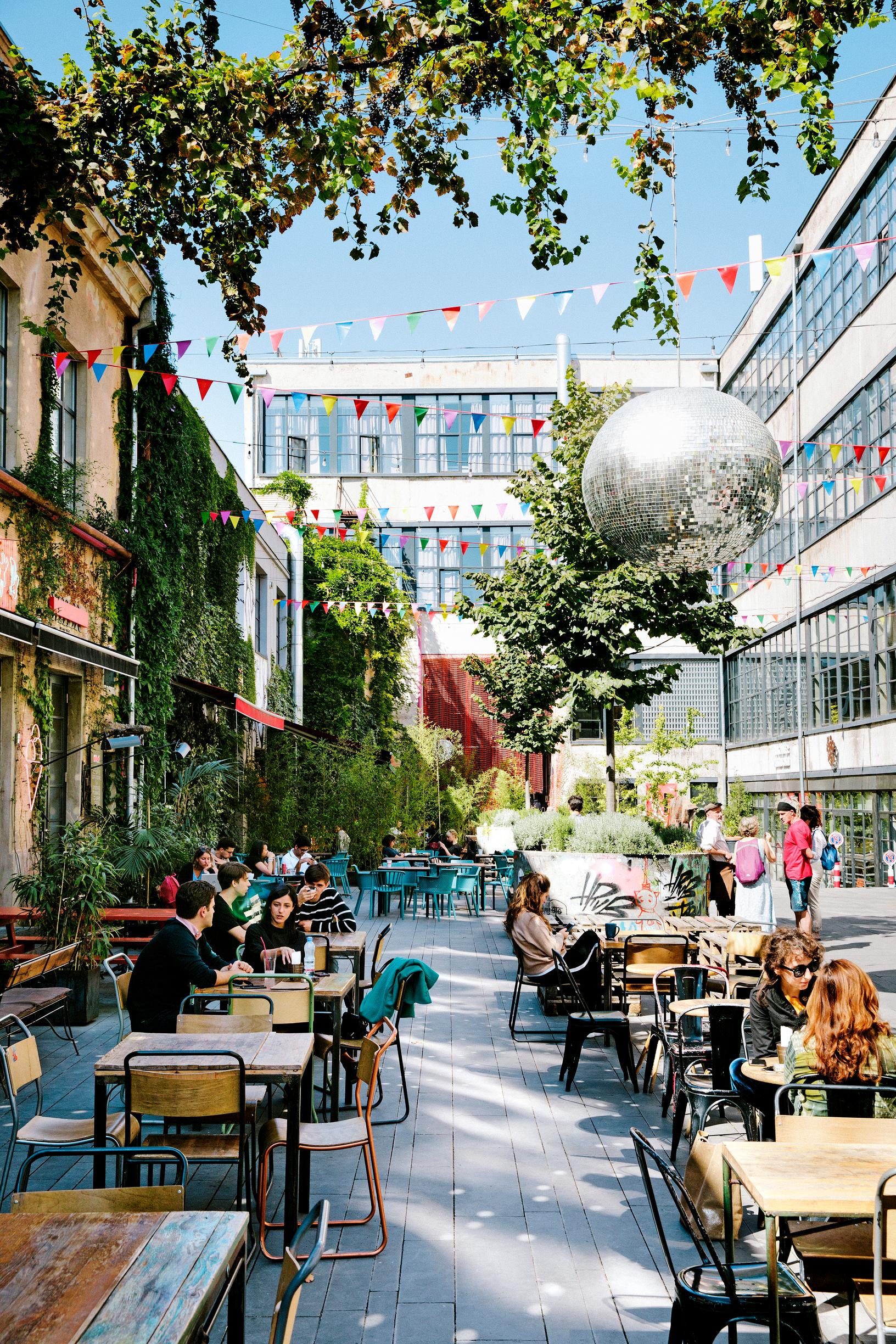 Perinteisen rinnalla kukkii silti uusi. Mennään katsomaan sitä vielä hetkeksi. Vanhan teollisuusrakennuksen seinät ovat täynnä värikkäitä muraaleja ja graffitteja. Sisäpihalla roikkuu värikkäitä viirejä ja valtava diskopallo. Pihan laidalla on vieri vieressä ravintoloita, joista saa kaikkea ramen-nuudeleista gourmethampurilaisiin.