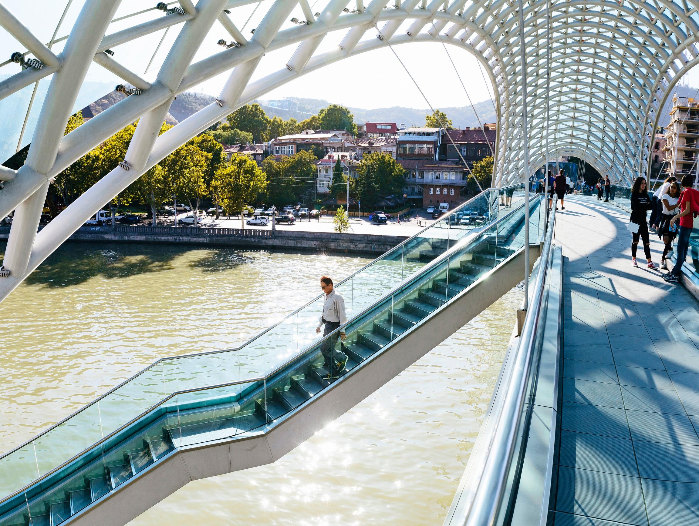 Kun vaunu nousee korkeammalle, silmien edessä alkaa hahmottua Tbilisin keskusta. Ensimmäisenä huomion kiinnittävät sen lukuisat modernit rakennukset. Kurajoen ylittää vuonna 2010 valmistunut Rauhansilta. Se sai kaarevan lasikattonsa vuoksi paikallisilta lempinimen Always Ultra, koska silta muistuttaa täältä ylhäältä katsottuna hieman pikkuhousunsuojaa.