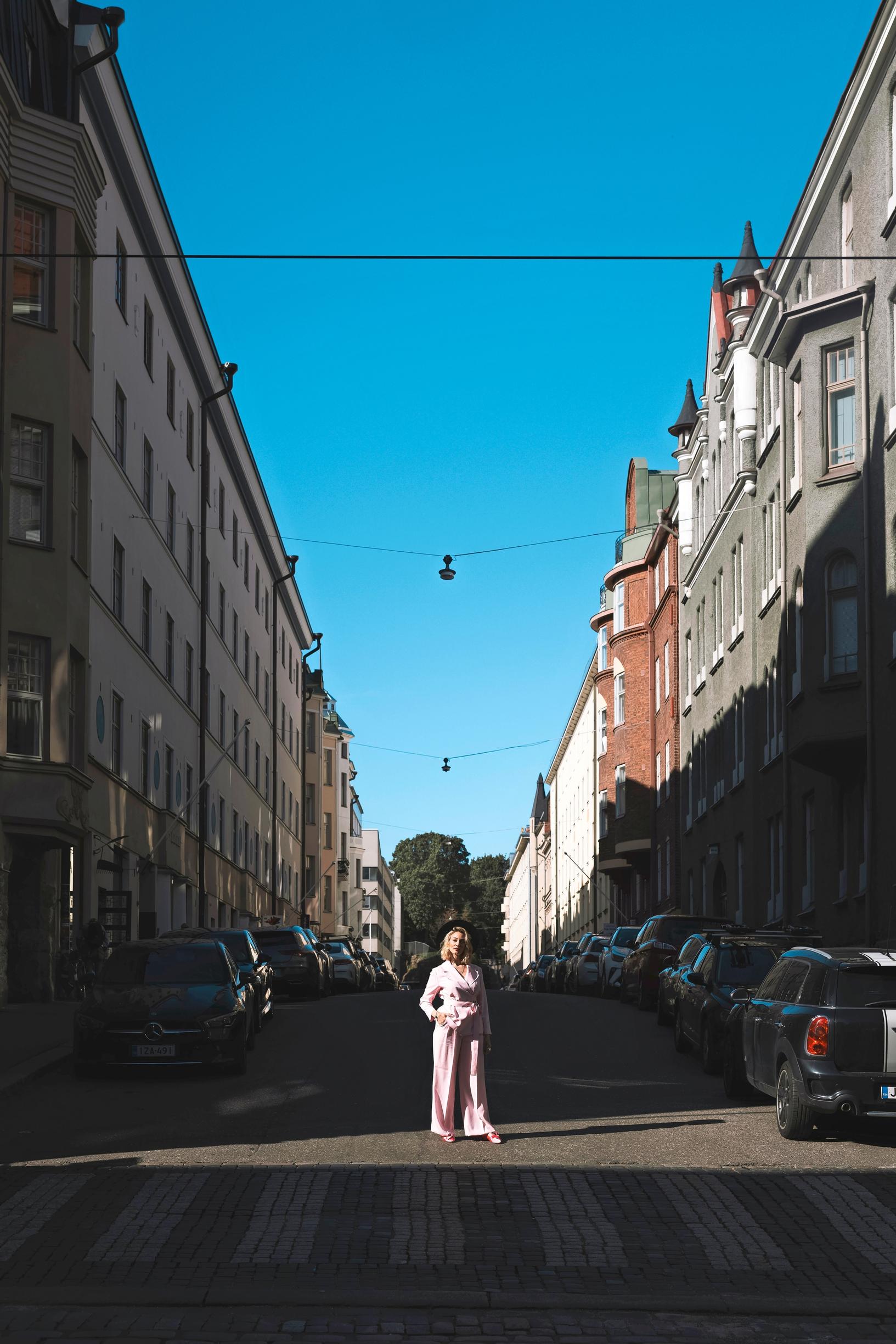 Meikki Muru Ritala. Tyyli Matisa Nassir. Housupuku Arcí, Gemmi Store. Kengät Edly. Hattu Stetson, Hattu Helsinki. Korut Sora Design, Himo Shop, Karo Koru. Mekko Vejits, kengät Unisa, hiuspanta FNRM, Liike-Shop. Korut Sora Design, Himo Shop. Aurinkolasit Even & Odd.