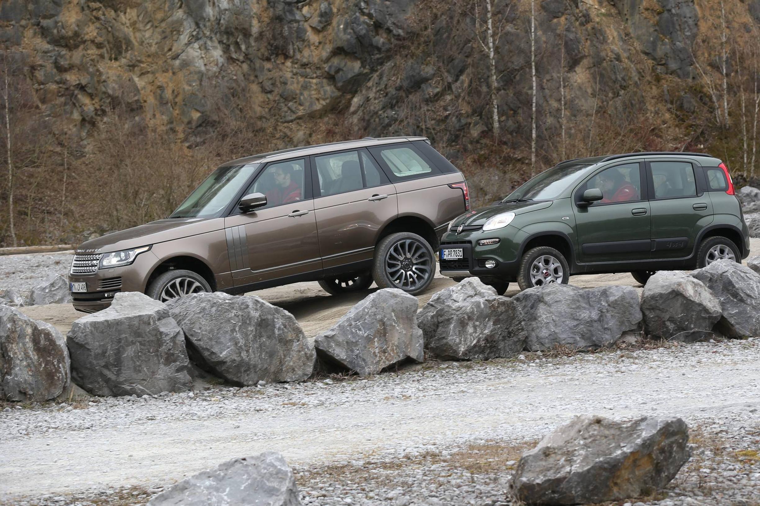Panda ryömii kytkin luistaen ja sähköisesti simuloidun tasauspyörästön lukon voimin pienten 15-tuumaisten ympärivuotiseen ajoon tarkoitettujen renkaidensa varassa kallioisen vuoren ja aavikon yli, ja lopulta se loiskauttaa virtaavan joen läpi. Saksassa melkein kahdeksan kertaa Pandaa kalliimman, tuplasti painavamman ja seitsemän kertaa tehokkaamman Rangen näkökulmasta tuo joki on lätäkkö, aavikko on hiekkalaatikko ja vuori pieni kasa kiviä. Onko se siksi elitistinen auto? On tietysti. Niinpä Range valloittaa vieraiden maiden sijasta seurapiirit. Sitä vastoin Fiatin sitkeä pieni nelivetoinen osoittaa, että rahalla ei saa aina hauskempaa autoa.