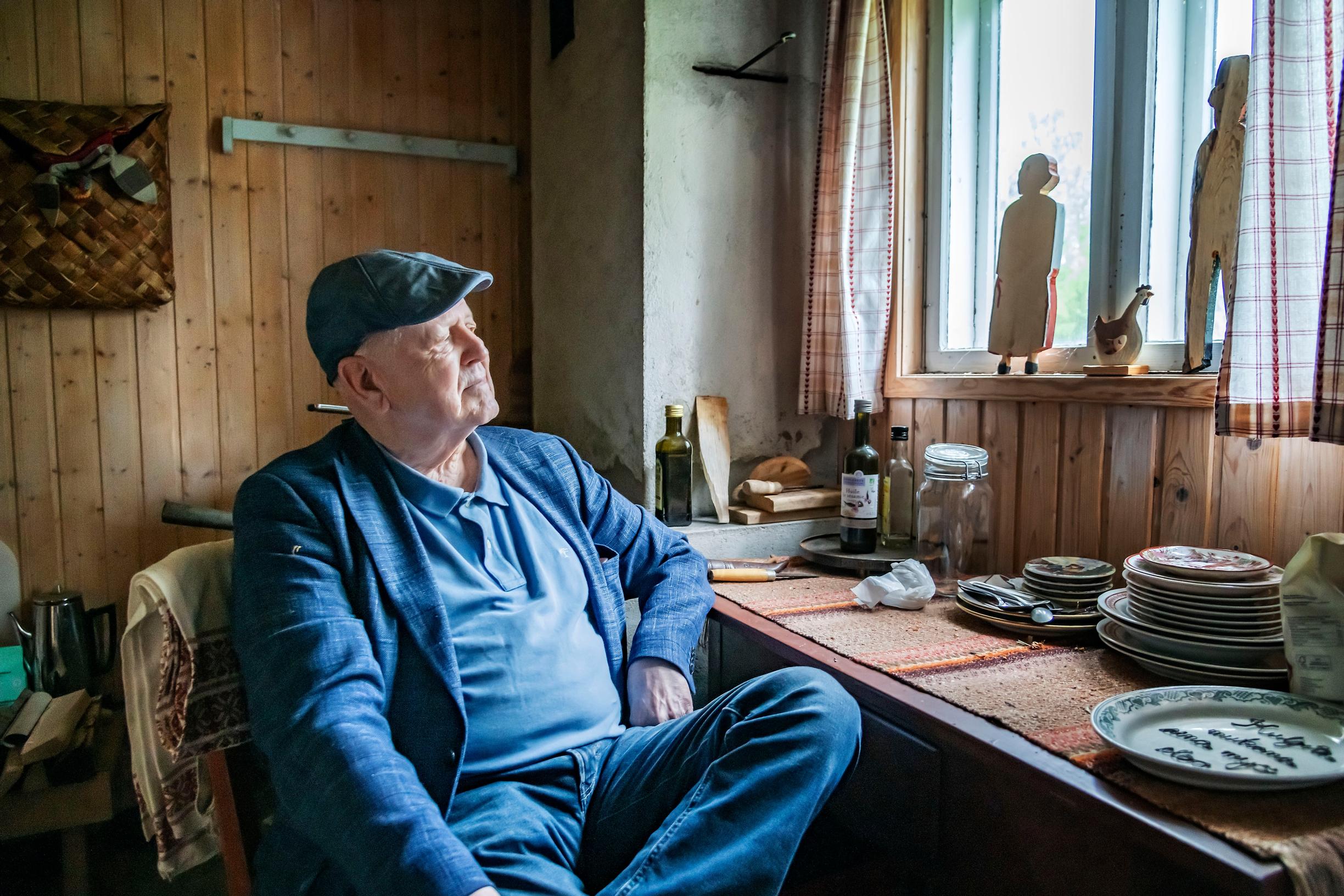 Kirjailija sinertää. Siniseen pikeepaitaan ja pikkutakkiin sonnustautunut Antti Tuuri käyskentelee Korsnäsin Molpessa Pohjanmaalla sijaitsevan ruokaravintola Strand-Möllen salissa miltei kuin kotonaan.