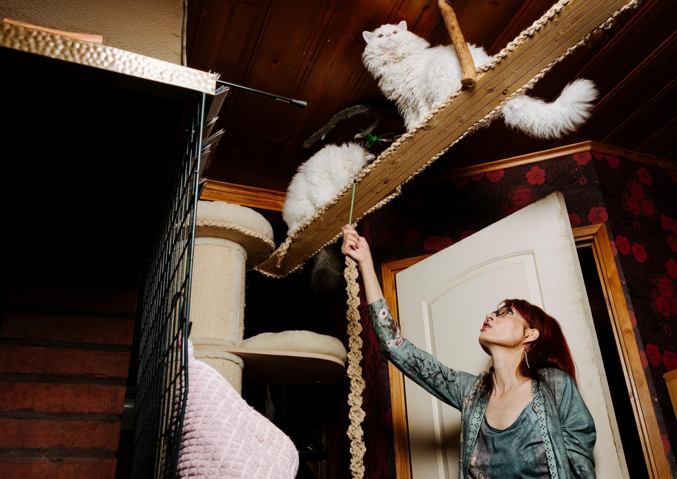 – Jouduin lopettamaan agilityharrastuksen, koska en enää pystynyt juoksemaan koirien rinnalla. Tilalle on tullut kissanäyttelyissä kiertäminen. Ne ovat minulle henki ja elämä. Pääsen pois kotoa, eikä näyttelyissä kukaan välitä sairauksistani. Rakastan myös pestä, puunata ja esittää kissojani.