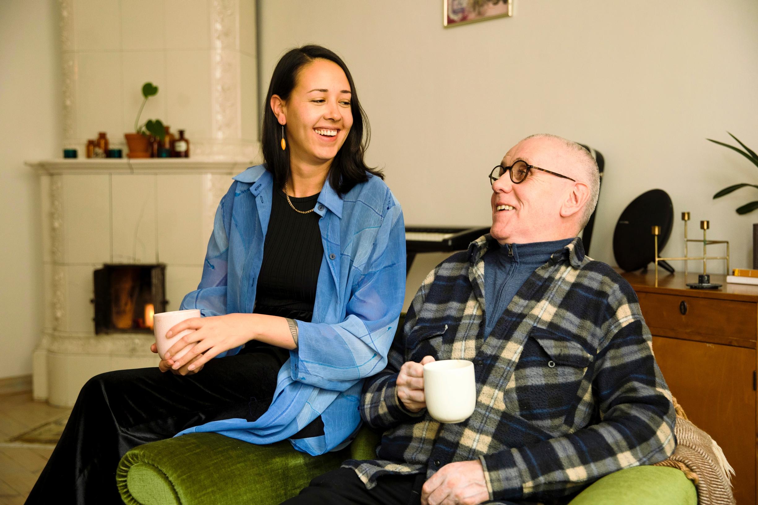 Jukka ja Helmi eivät ole tavanneet pariin kuukauteen. Halaukset on vaihdettu ja nauru täyttänyt huoneen.