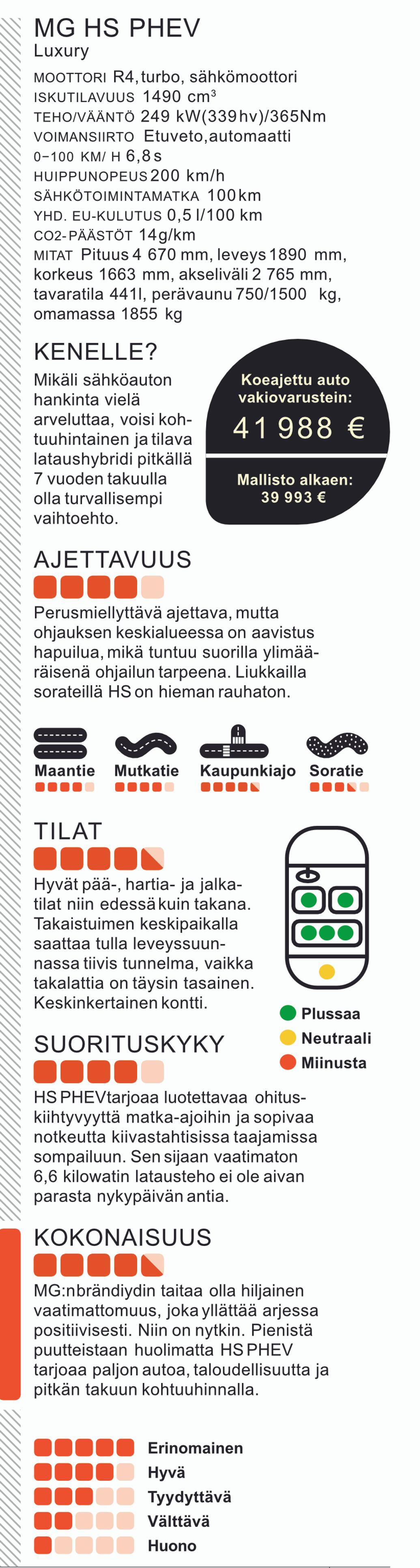 Mitä yhteistä on terveyskeskuksella, arvostuksella ja klusterilla? Ei, nyt ei ole kyse Suomen kipuilevasta sote-himmelistä, vaan oikea vastaus on, että ne kaikki löytyvät MG:n uudesta, toisen sukupolven HS-pistokehybridistä!