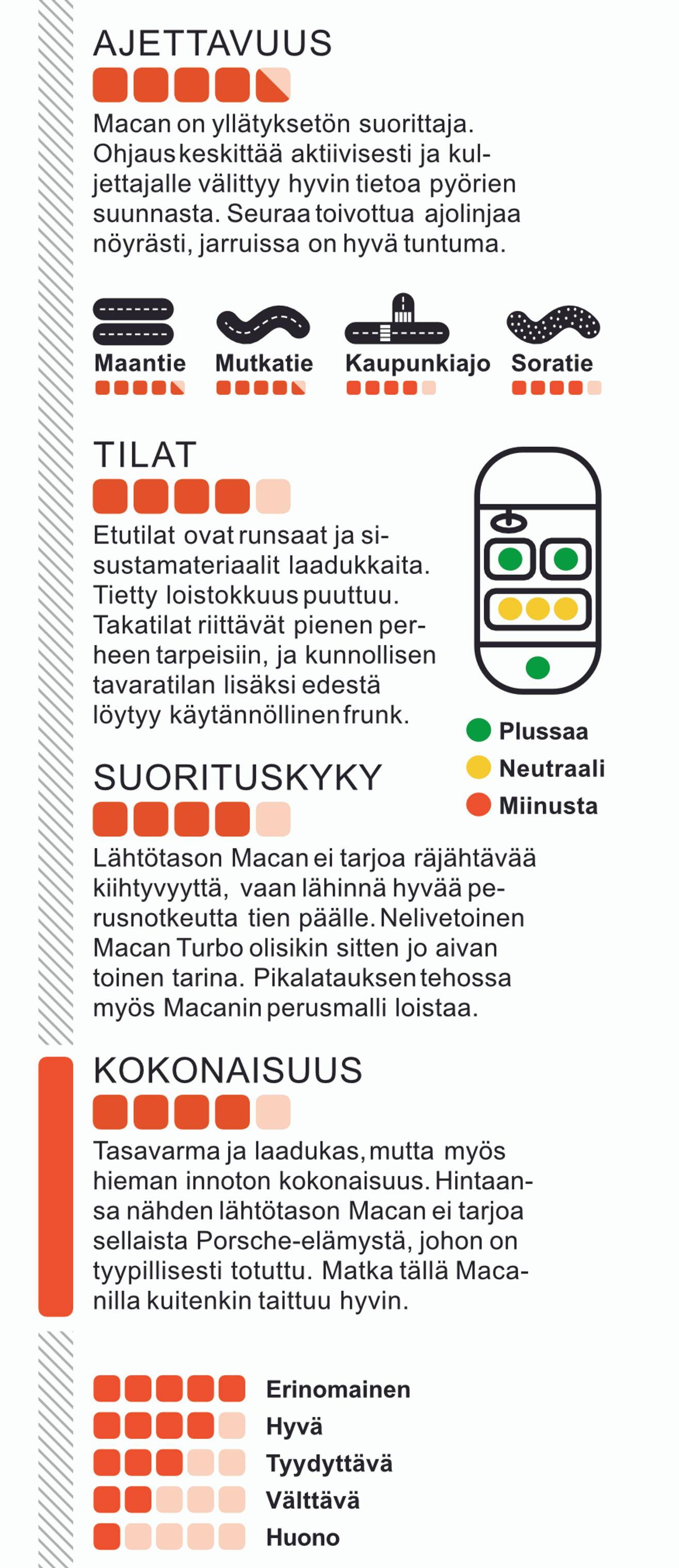 Suomalaisen Porsche-perheellisen kakkosautoksi tai merkin pariin hiljalleen siirtyvälle Macan voisi olla oiva valinta, mikäli budjetti sen vain sallii.
