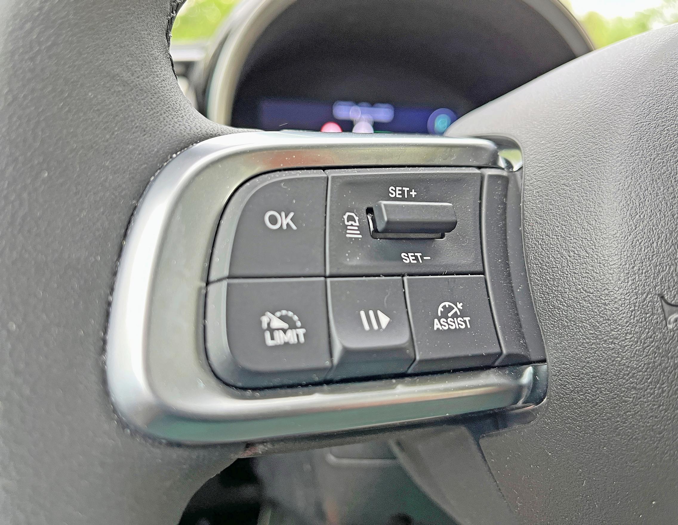 ”Mukautuva tasanopeudensäädin toimii siististi ja liikennemerkkien tunnistus kertoo nopeusrajoitusten muutoksista, mutta ei häiritsevästi. Katvealuevaroitin käyttää ultraääntä varoittaakseen muista tiellä liikkujista.”