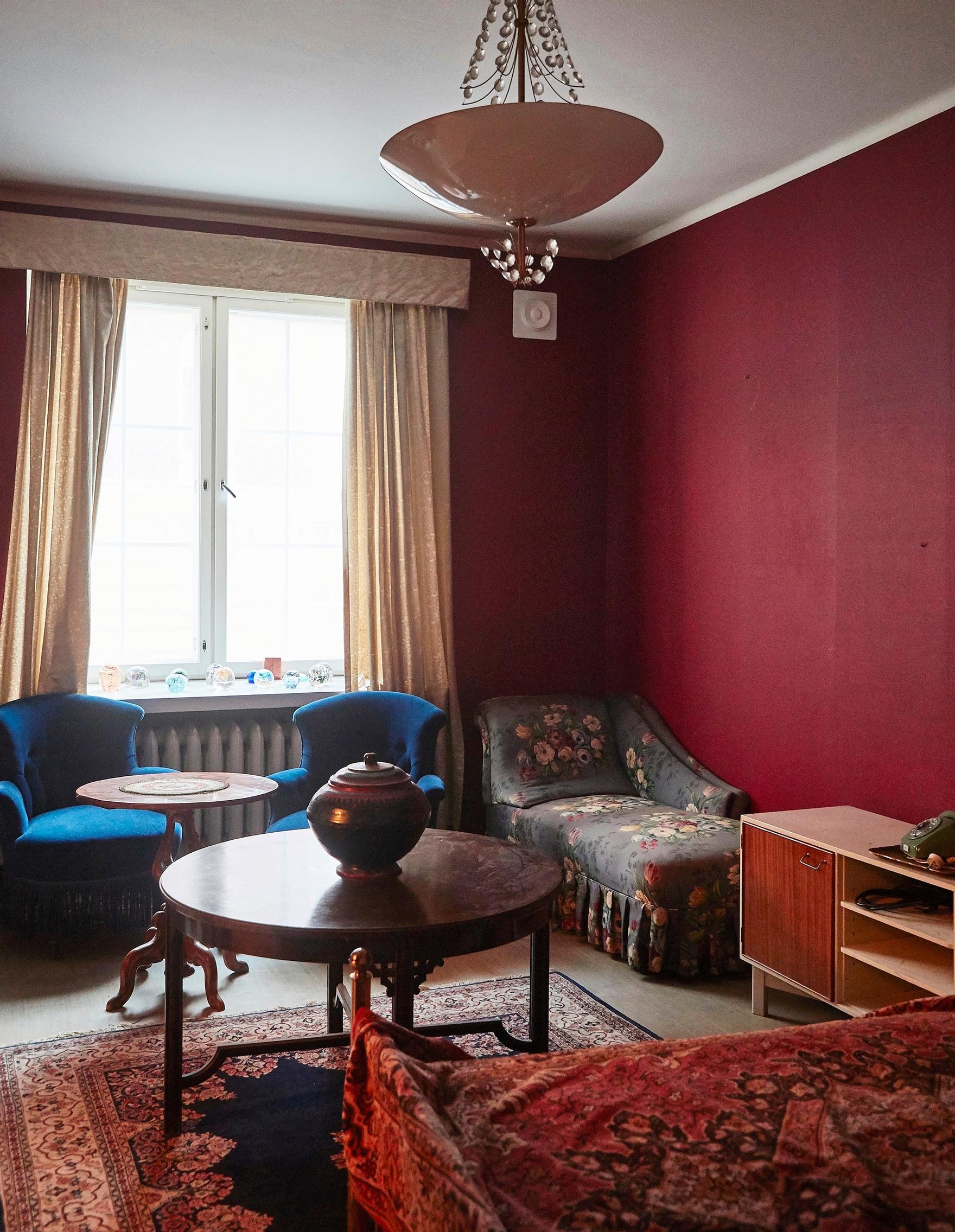 Kun kasvomaskia vähän raottaa, aistii miedon tupakantuoksun. Talvipäivän aurinko tulvii sisään ruutuikkunoista ja valaisee 132-neliöisen asunnon, jonka sisustuksessa on käytetty rohkeasti värejä. Makuuhuoneessa mekaaninen herätyskello raksuttaa kovaäänisesti yöpöydällä, vaikka sen omistajan aika loppui jo yli 40 vuotta sitten.