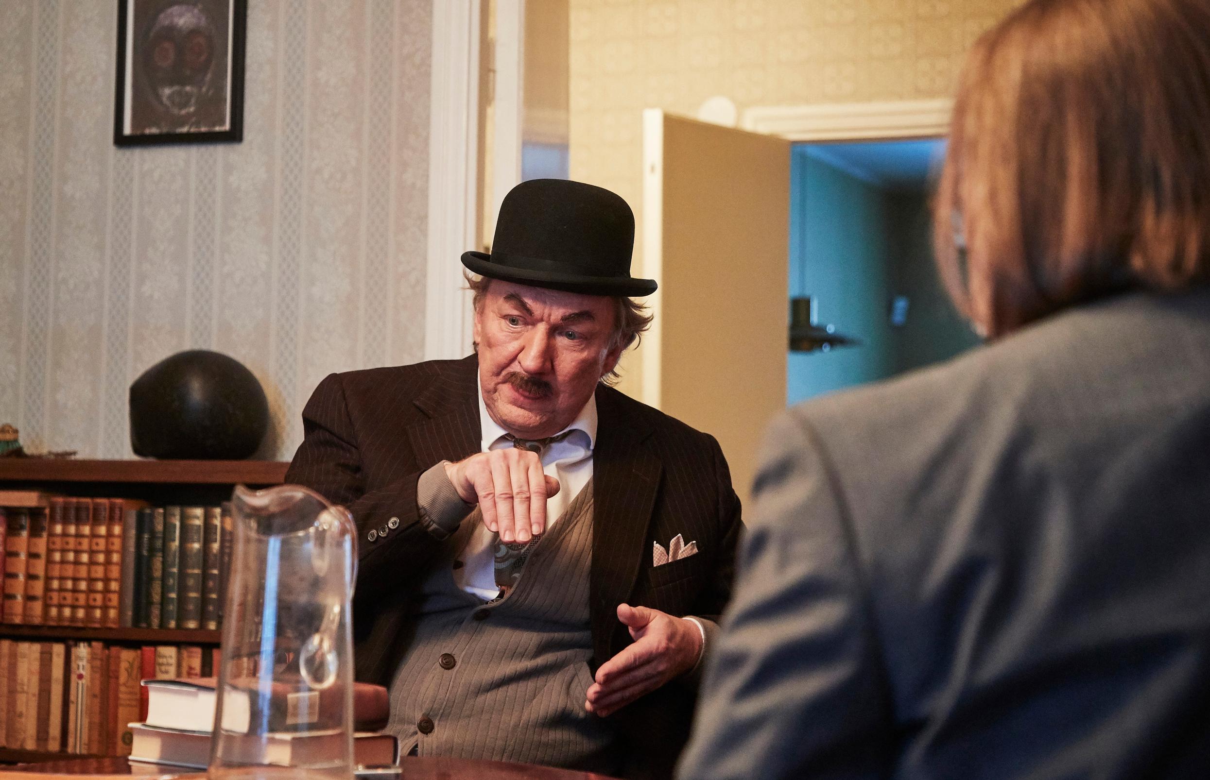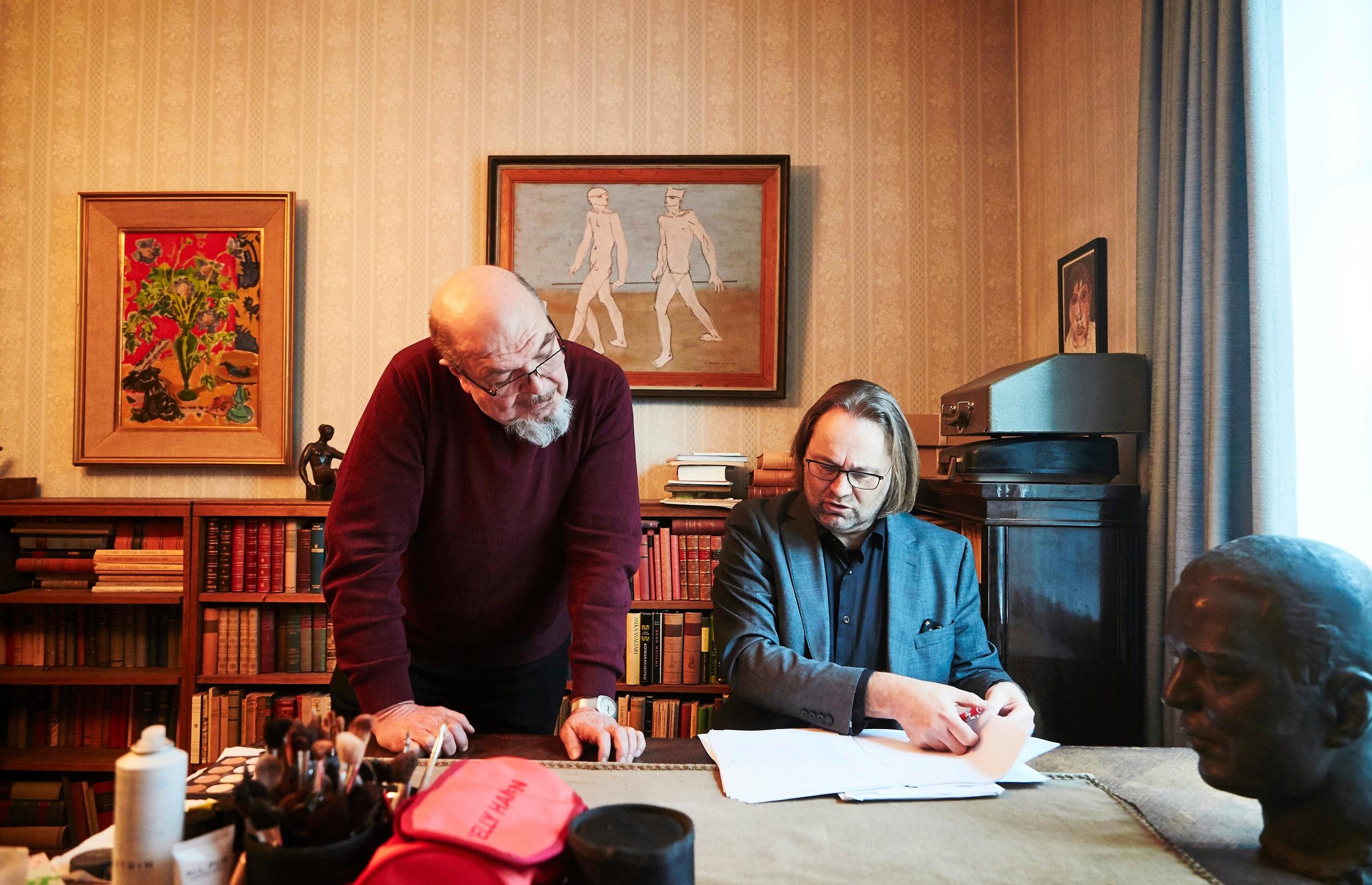 Nykyään Tunturikadun-kodissa on enimmäkseen aavemaisen hiljaista, mutta tänään kirjailijan työhuoneesta kuuluu puheensorinaa. Punaisessa sohvaryhmässä istuvat Waltarin tyttärenpoika, Joel Elstelä, Tampereen Komediateatterin taiteellinen johtaja Panu Raipia sekä näyttelijä Aimo Räsänen. Viimeksi mainittu on maskeerattu tarinamme päähenkilöksi.