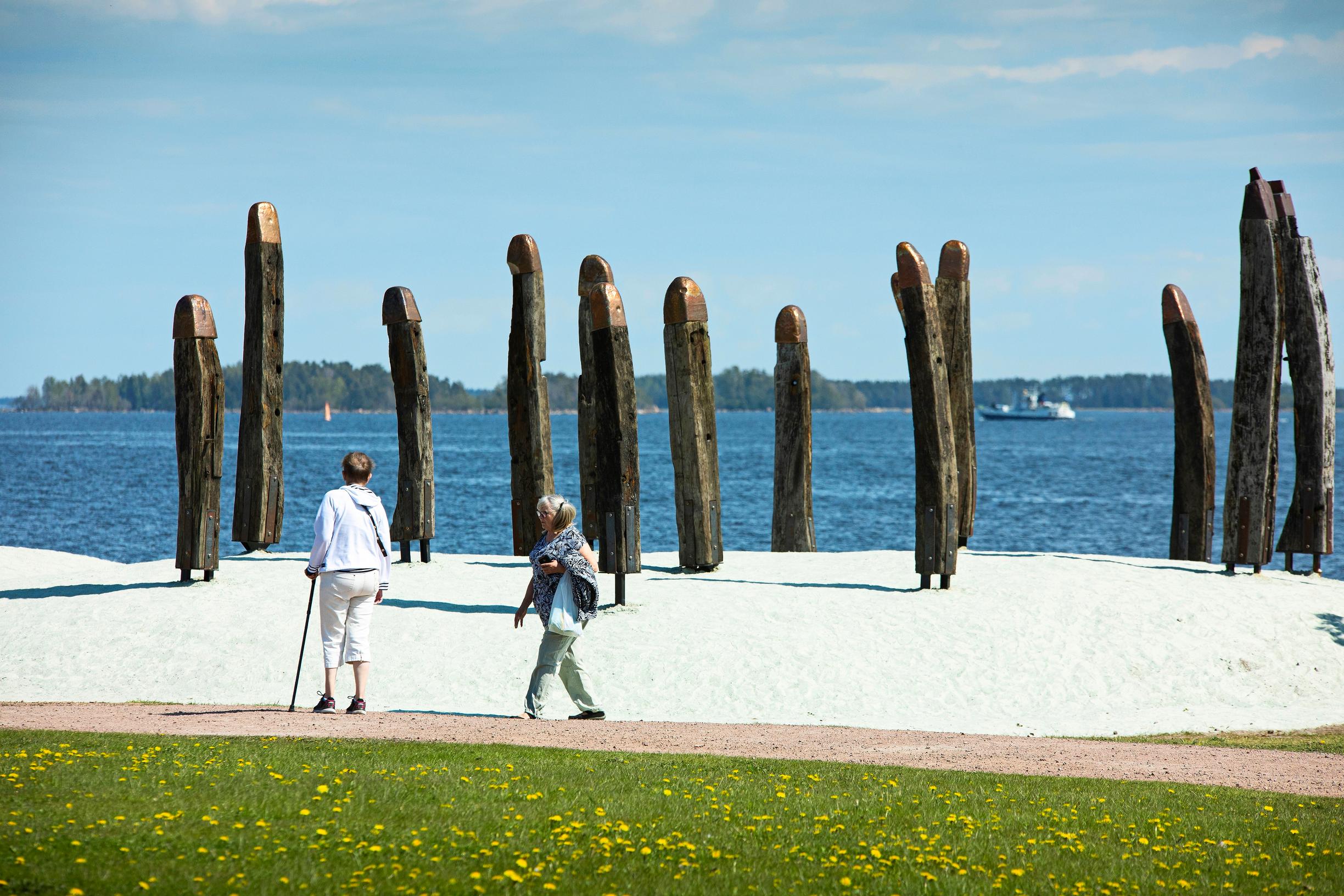 Lopulta päästään Katariinan Meripuistoon. Kahdenkymmenen hehtaarin maisemointityö alkoi vuonna 2004. Kun maa oli puhdas, Laaksonen palautti ympäristön entiselleen: kalliot, linnoitusvallit, niitty ja kivikkoinen ranta kaivettiin esiin. Lisäksi tehtiin valtava nurmialue, joka on vapaasti käytettävissä mihin tahansa, sen vieressä on lammasaitaus. Rauhoittumista kaipaavat saivat mietiskelylabyrintin, lapsille rakennettiin Muumitalo leikkialueineen. Puistossa on myös useita piknikpaikkoja sekä seitsemästä erilaisesta graniittilaadusta koostuva pöytä, jonka ääreen mahtuu jopa 50 henkilöä.