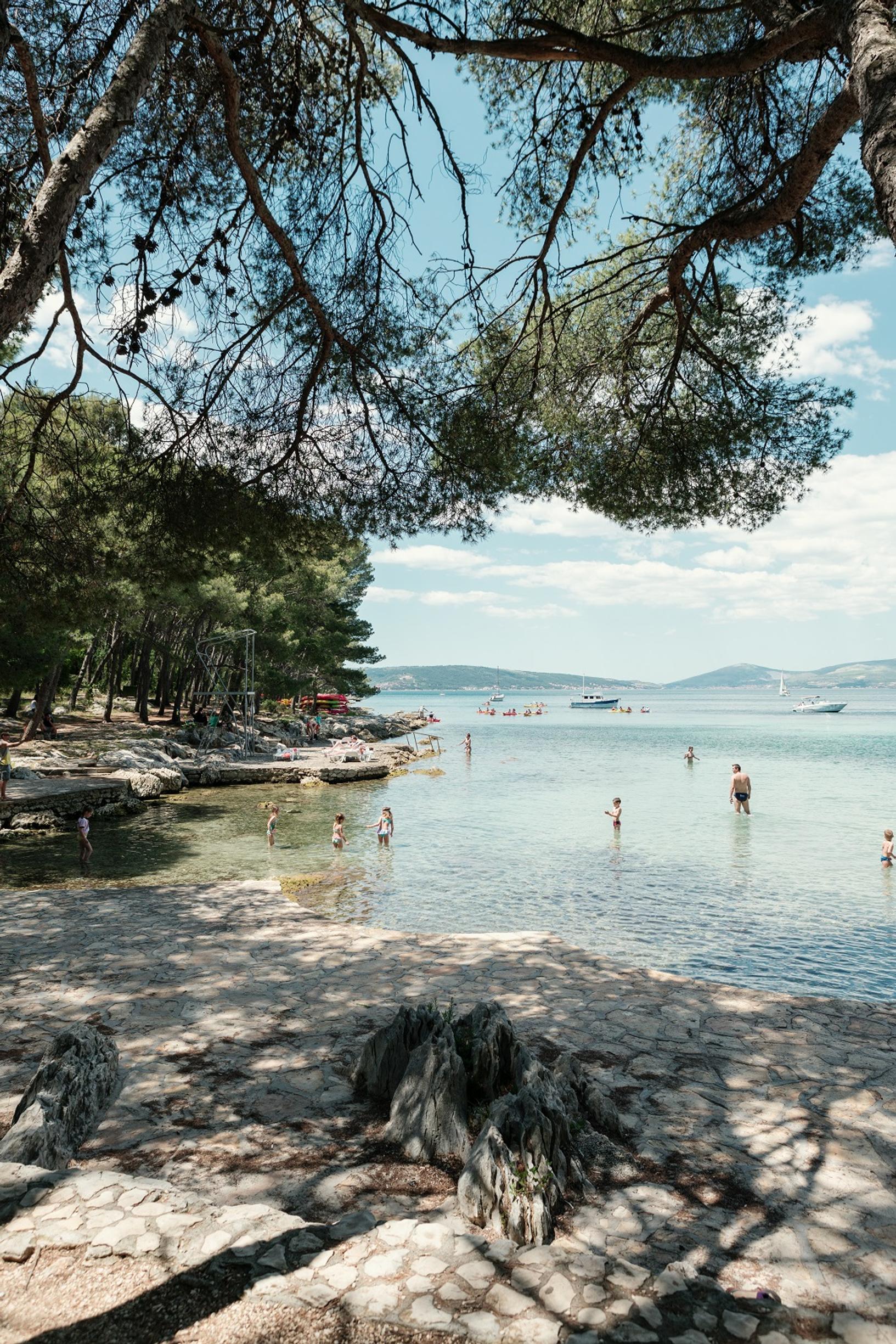 Splitissä voi yhdistää vaivatta kaupunki- ja rantaloman. Keskustasta ei tarvitse kulkea kauas päästäkseen uimaan. Hiekkarannoista lähin on Bajovic, joka on usein tupaten täynnä ihmisiä. Kivisiä rantoja seudulla riittää silmänkantamattomiin.