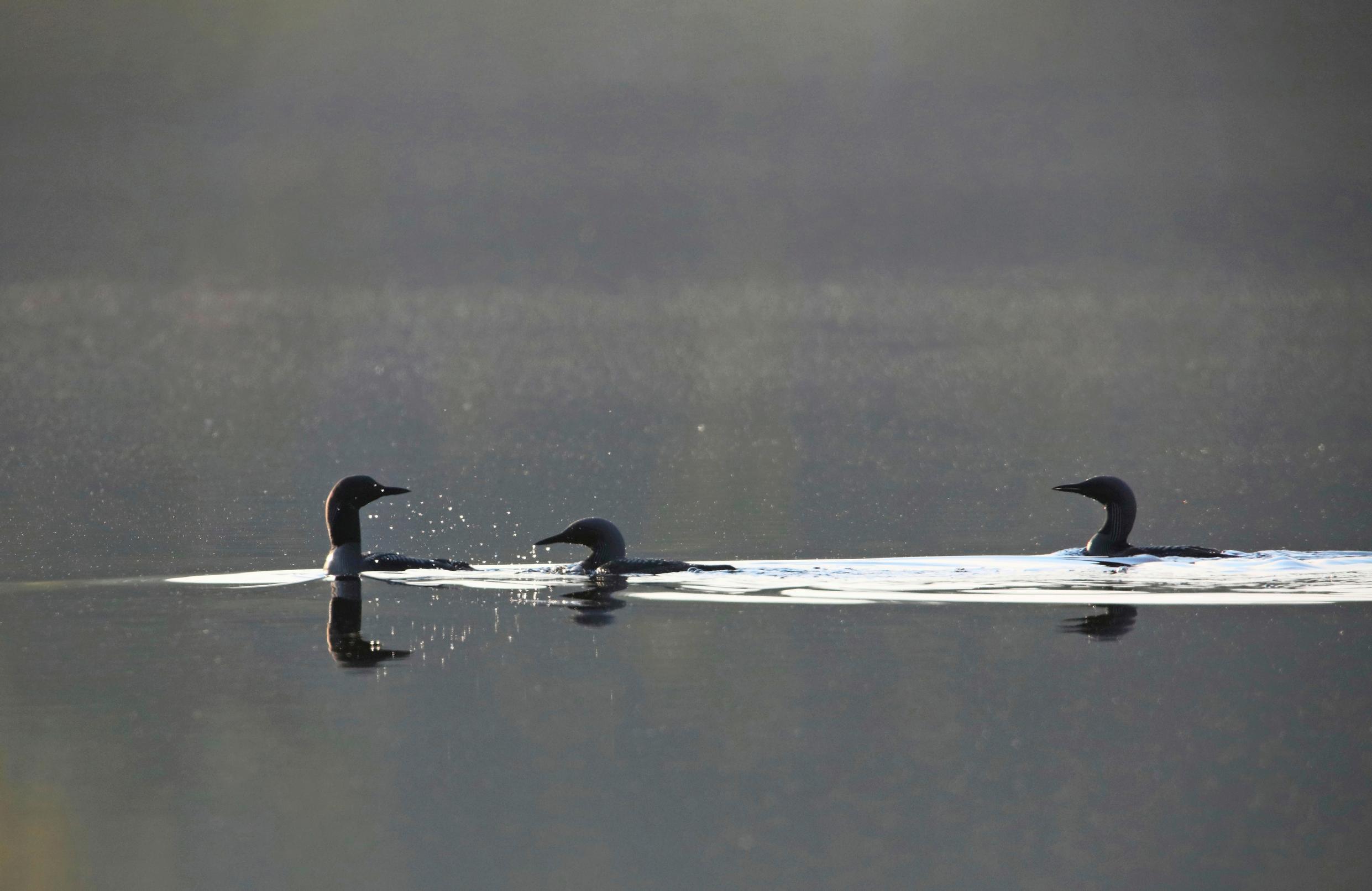 Uusi jäsen liittyy parveen seremonioiden saattamana. Laskeutuessaan uudelle järvelle muutaman sadan metrin päähän parvesta kuikka sukeltaa ja nousee pintaan lähempänä lajikumppaneita.