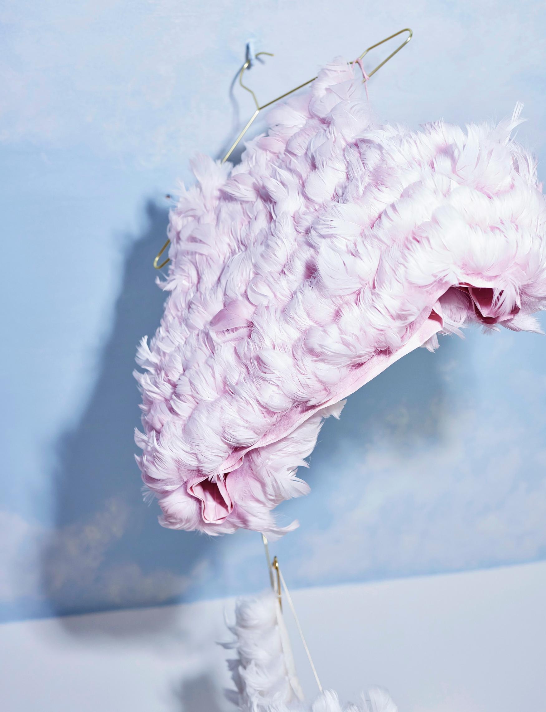 Toimittaja ja kirjailija Laura Friman kutsui tuota höyhentoppia tuoreessa Tauko-kirjassaan ”ikoniseksi”. Ja on totta, että se on viime vuosina tullut vastaan erityisesti Instagramissa tämän tästä. Toppi jää mieleen ehkä juuri koomisuutensa takia: sen höyhenistä väreilevät linjat eivät nuole kantajansa ihoa, vaan ennemminkin näyttää siltä kuin vaatteeseen pukeutunut henkilö olisi pujahtanut pullean höyhentyynyn sisään.