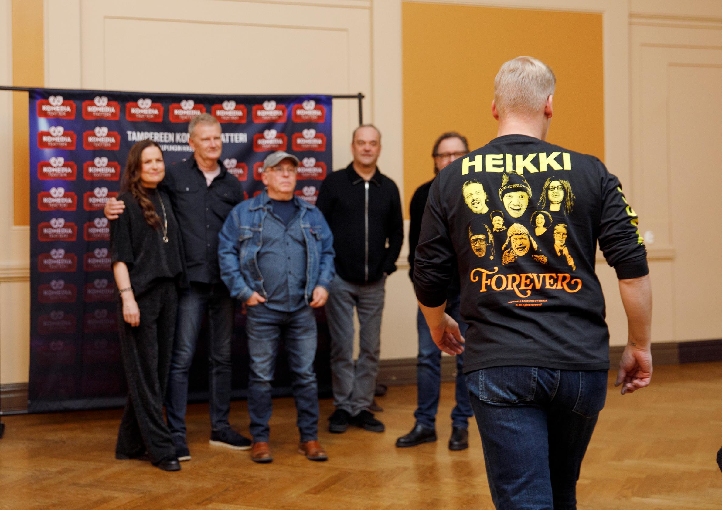 Osa katsoo hahmoa huulet puoleksi hymyssä, puoleksi mutrussa, koska ilo ja suru ovat päällekkäin. Seuraavat kaksi tuntia Heikki olisi läsnä, vaikka hän kuoli vuosi sitten 70-vuotiaana.