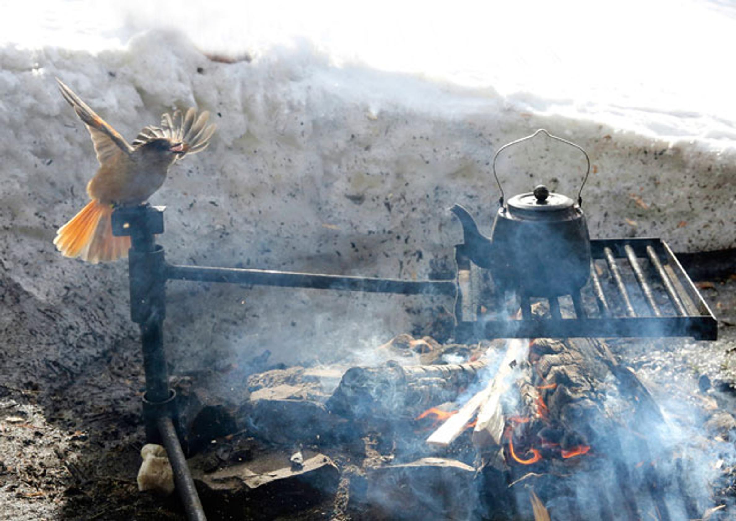 Miten erämaan eläjä voikin olla niin seurallinen? Kuukkeli on utelias – se lehahtaa laavulle heti, kun joku virittää nuotion. Havumetsän oksistossa leijaileva savu on kuukkelille merkki siitä, että tarjolla saattaa olla syötävää.