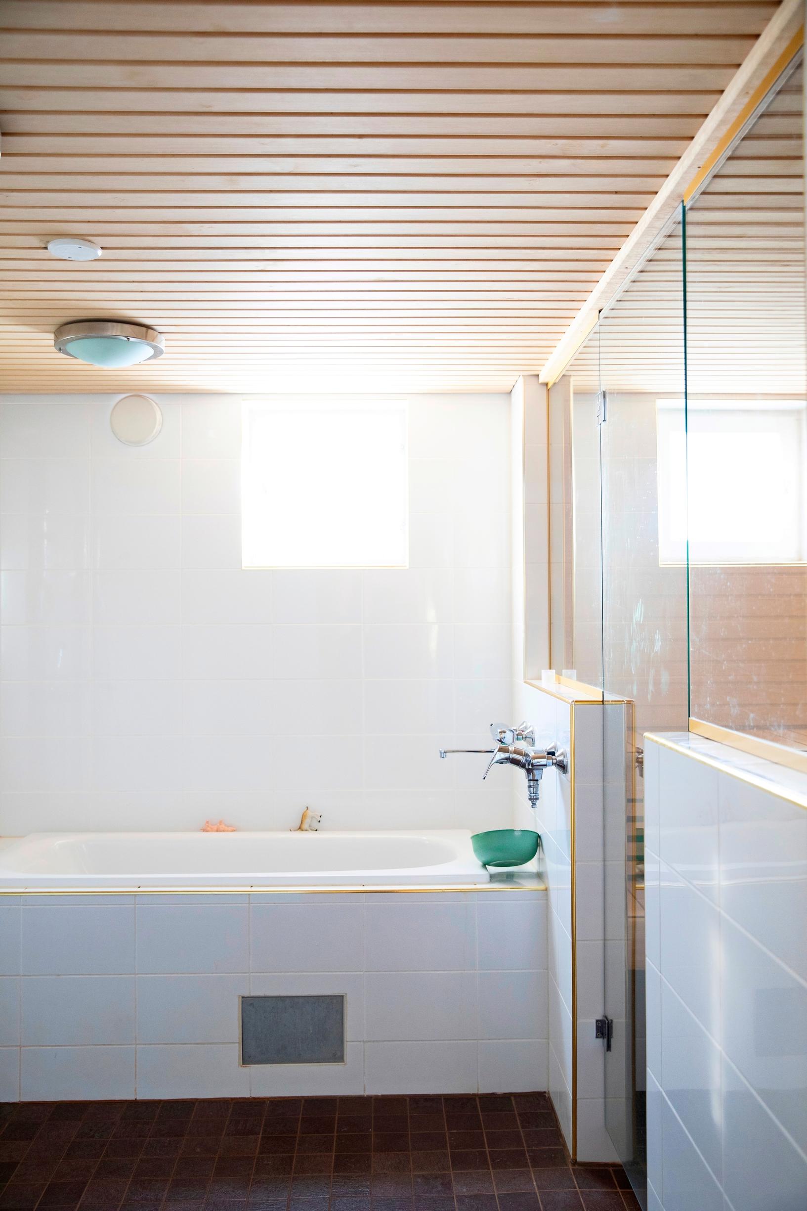 Nyt kellarissa on hänen lempipaikkansa: valoisa kylpyhuone, jossa on iso kylpyamme. Siellä on kiva viikonloppuisin rentoutua ja tehdä hunajahoitoja.