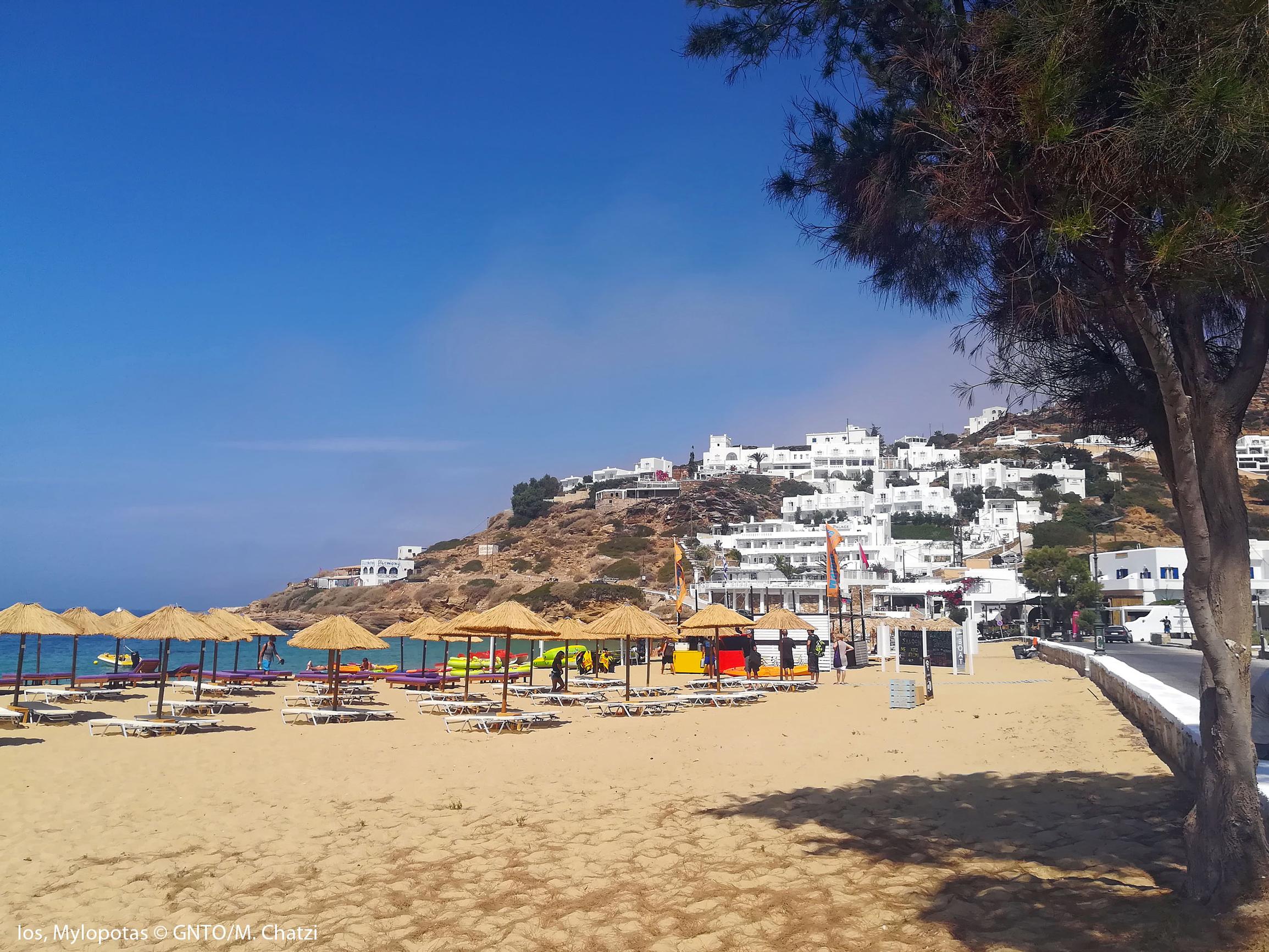 Ios on saari, jonka 87 kilometriä pitkästä rantaviivasta yli kolmannes on hiekkarantaa. Yksi parhaista rannoista on viidestä lahdenpoukamasta muodostuva Manganari, joka hellii kävijäänsä kultaisella hiekalla ja kristallinkirkkaalla vedellä. Samoissa maisemissa kuvattiin aikanaan myös Luc Bessonin kuuluisa elokuva Suuri sininen.