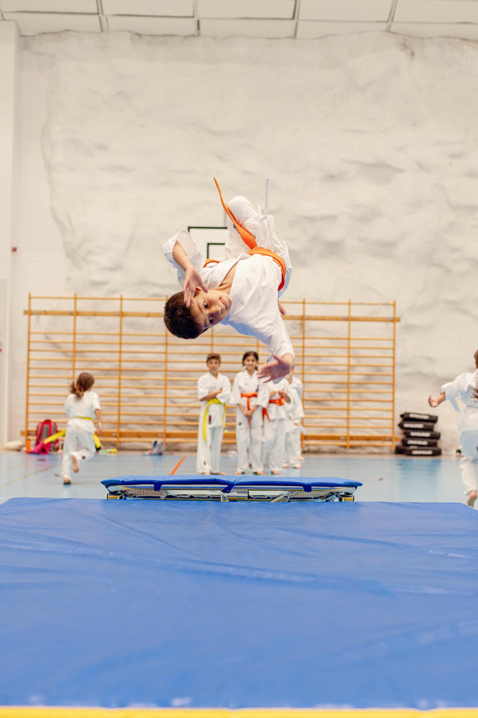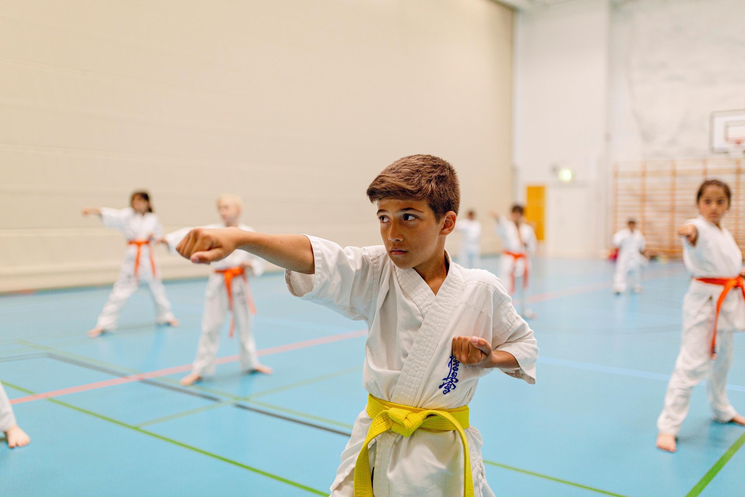 Kuumana kesäiltana Sipoon monitoimihallissa maan alla on viileää. Koronarajoitusten sallimat kymmenen 7–14-vuotiasta karatekaa ovat saapuneet kyokushin karaten junioriyhmän harjoituksiin. Puolet heistä on tyttöjä.