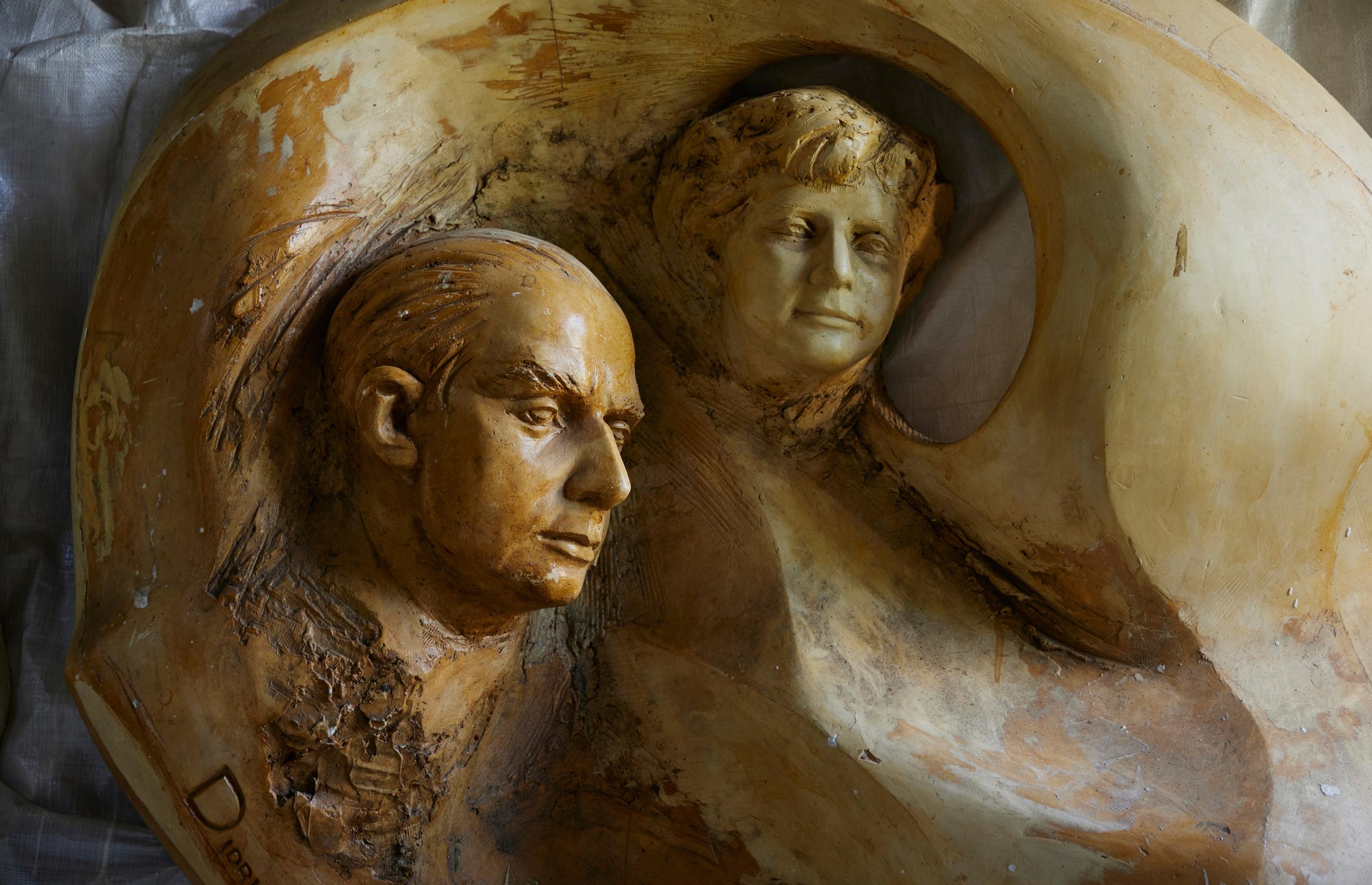 – Hän kehitti oman menetelmänsä ja veisti teoksensa metallilla vahvistettuun kipsiin. Kuparilevy valssattiin ohueksi, kuumennettiin pehmeäksi ja asetettiin muotin päälle. Sen suojaksi äiti laittoi savea ja käytti räjähdysaineena jauhemaista aniittia. Kun se räjähti, kuparilevy sai muotonsa painuessaan kipsimuottia vasten, Jean Ramsay kertoo.