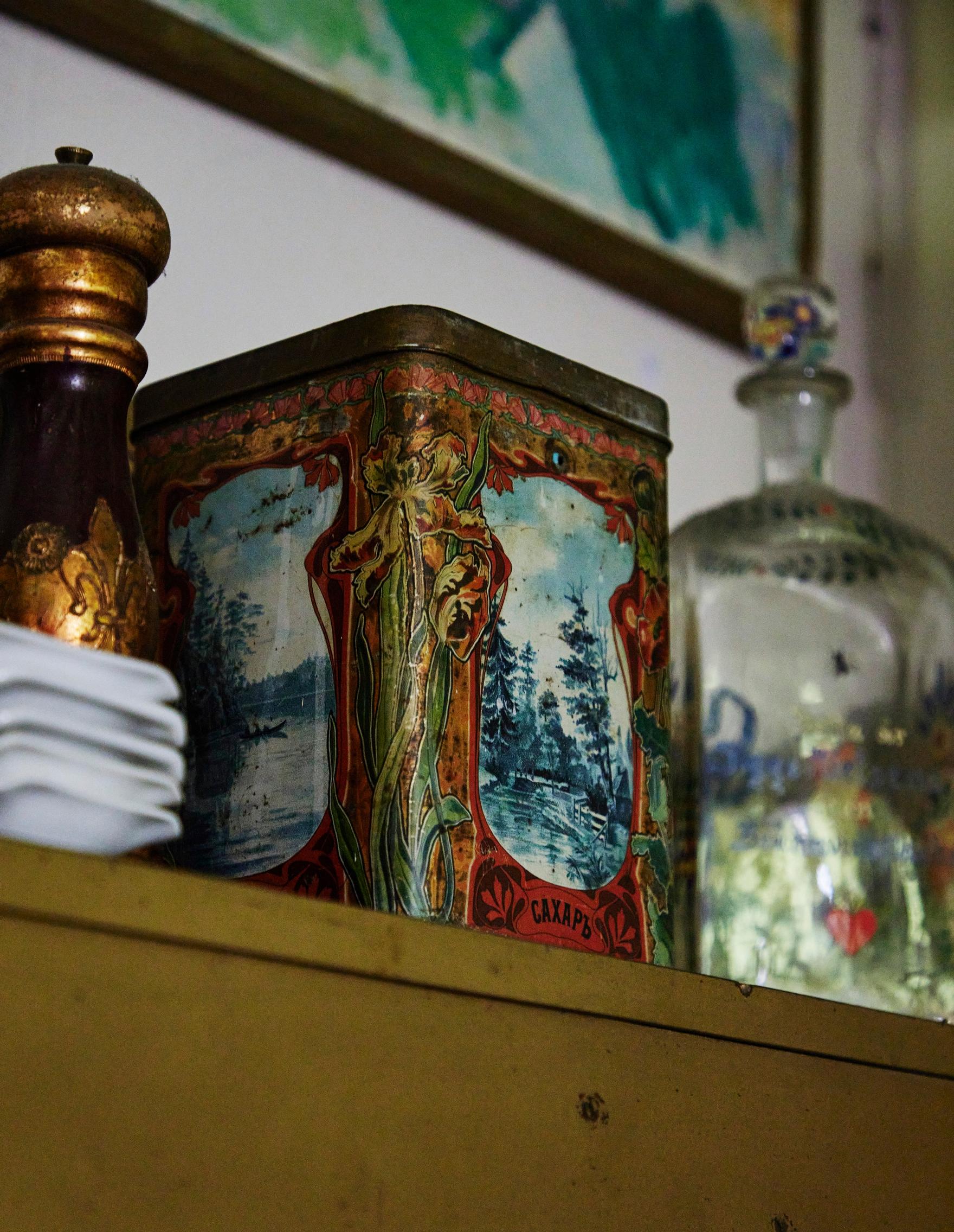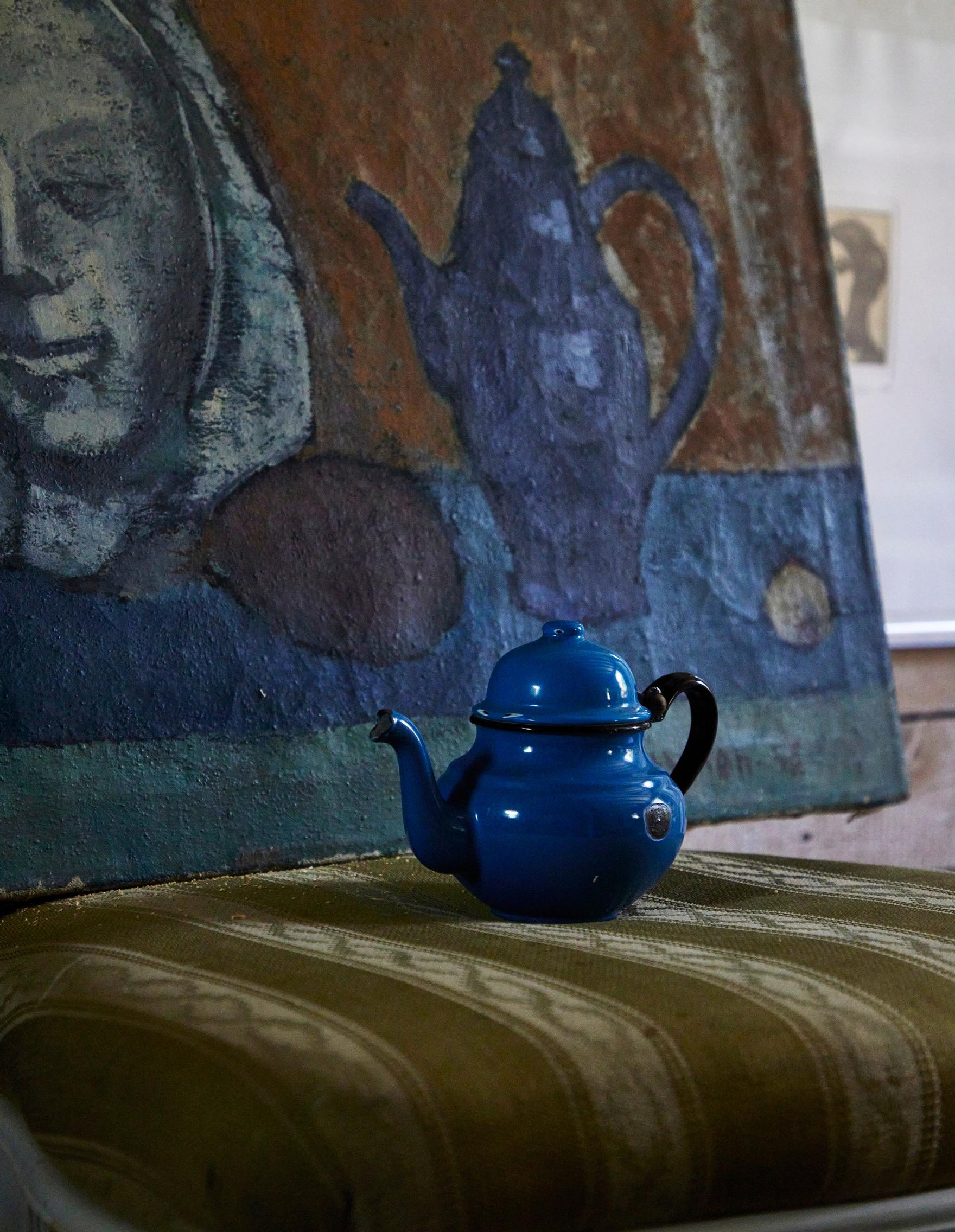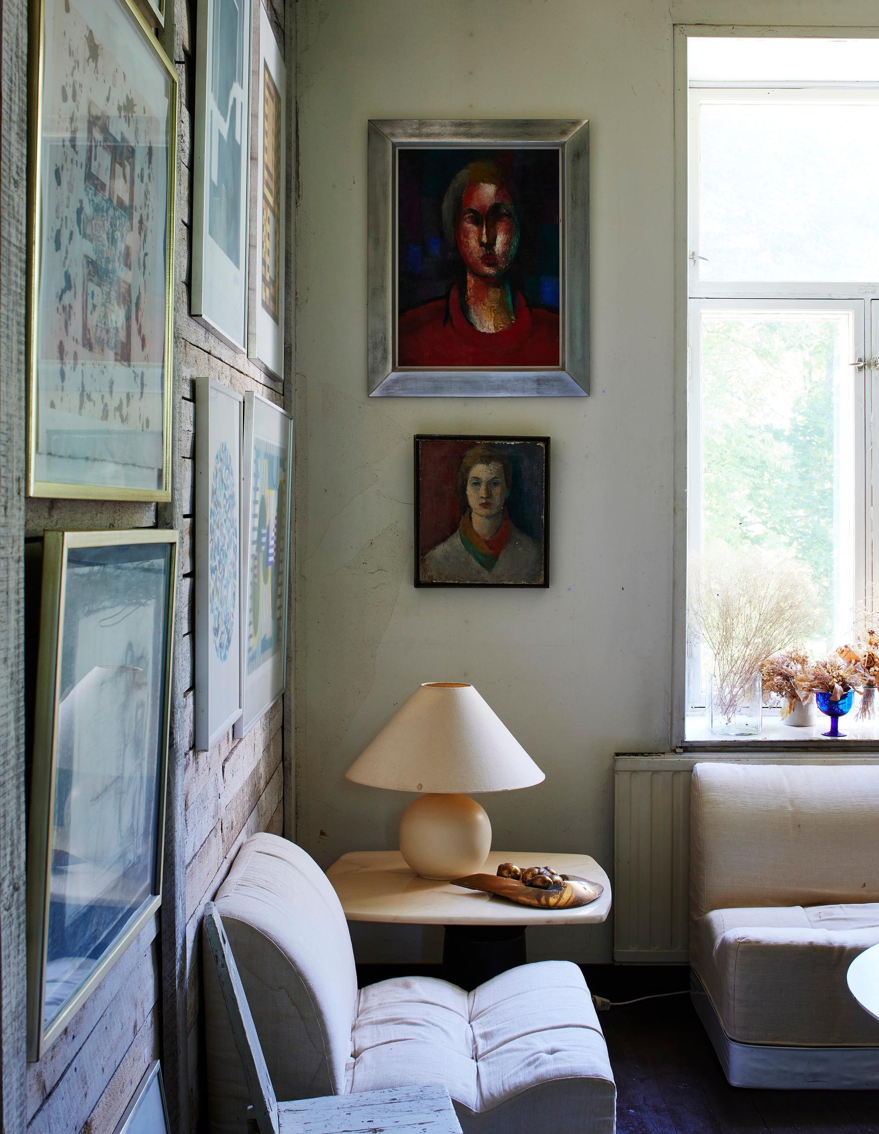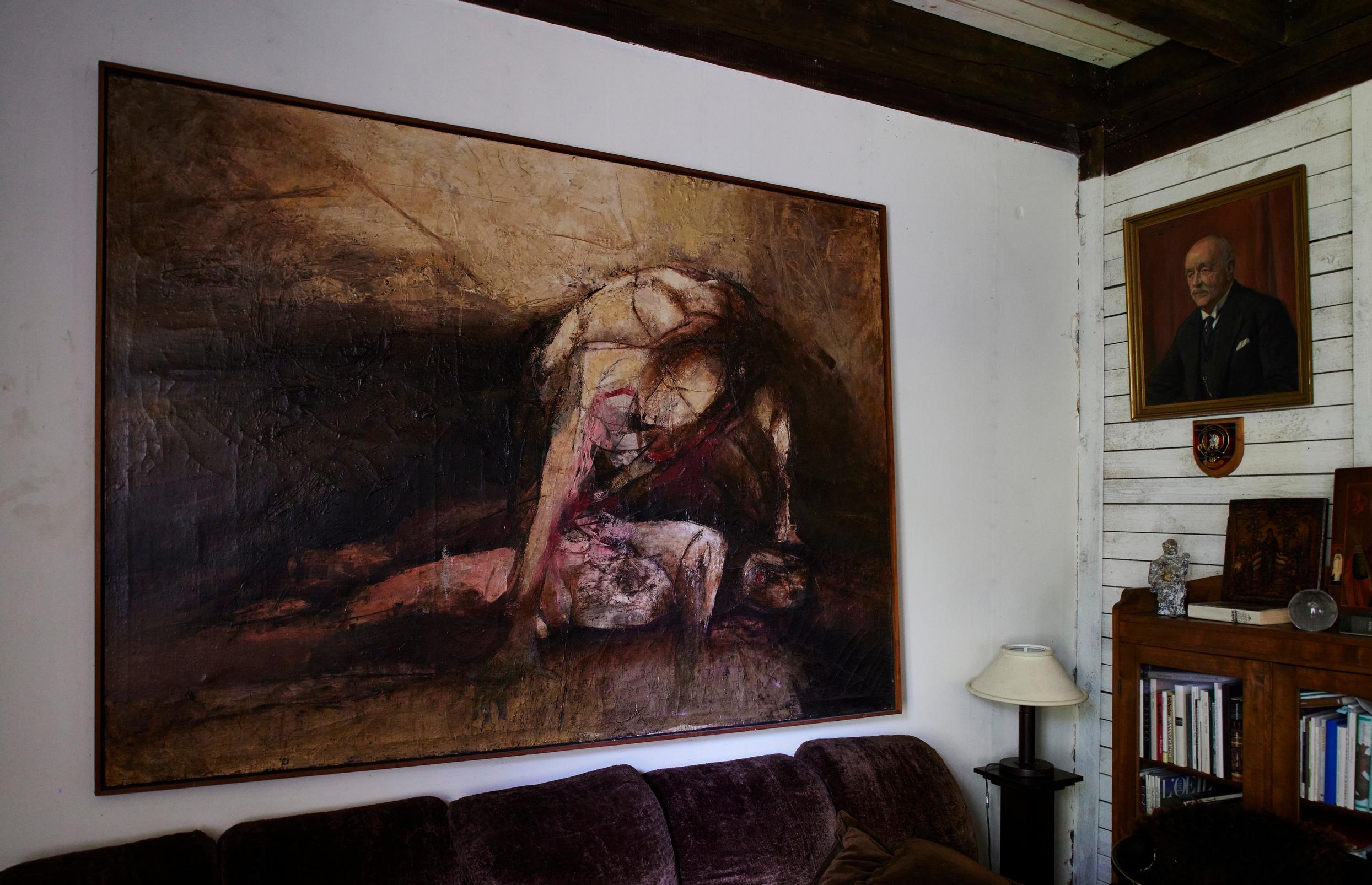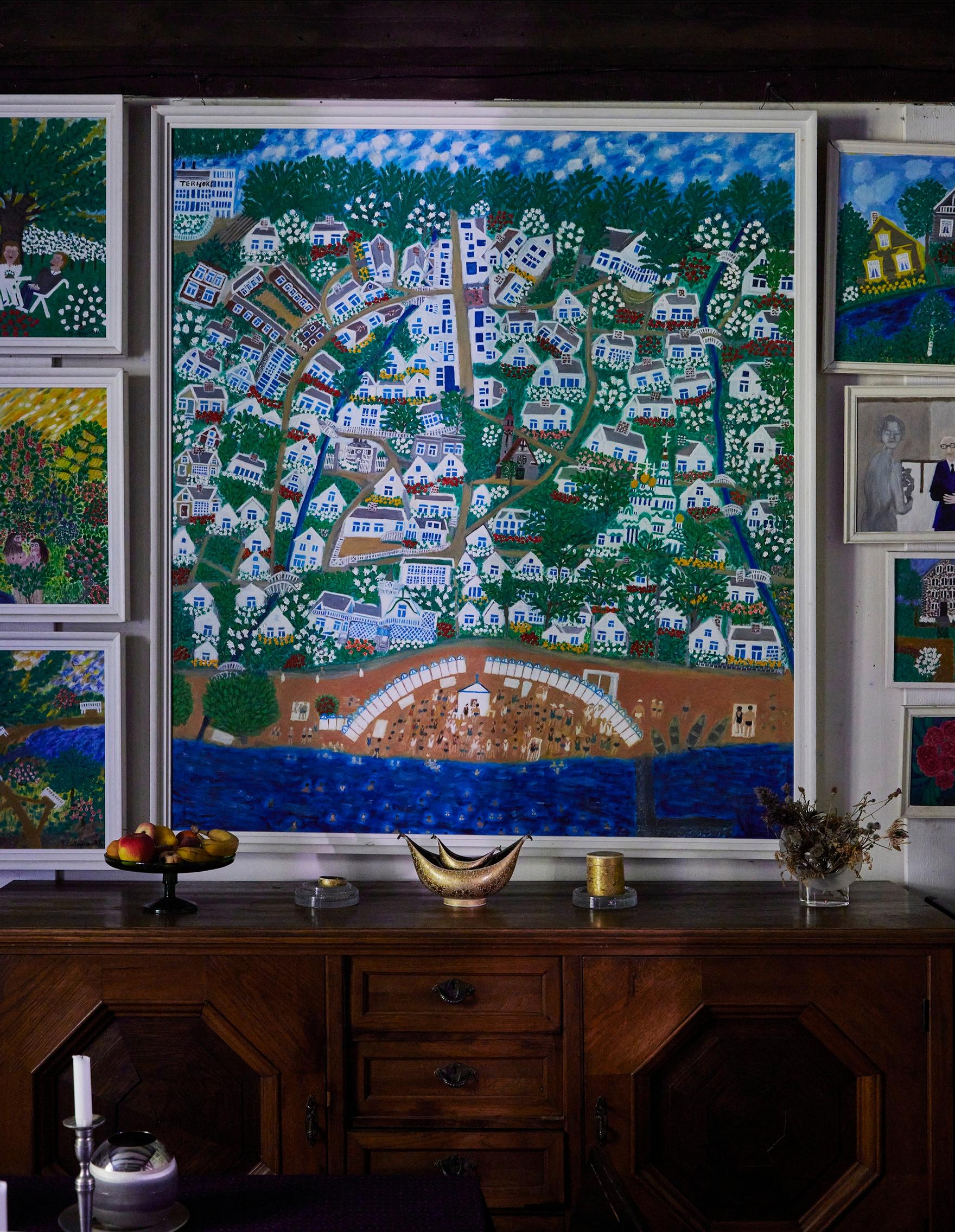 Yksi nurkkaus on pyhitetty Lailan äidin maalauksille. Tyyni Pullinen jäi 74-vuotiaana auton alle, osti toipumisaikanaan guassivärit ja omistautui maalaamiselle. Hänen työnsä ovat värikkäitä ja naivistisia ja kuvaavat muun muassa Karjalaan jäänyttä kotikylää Terijoella.