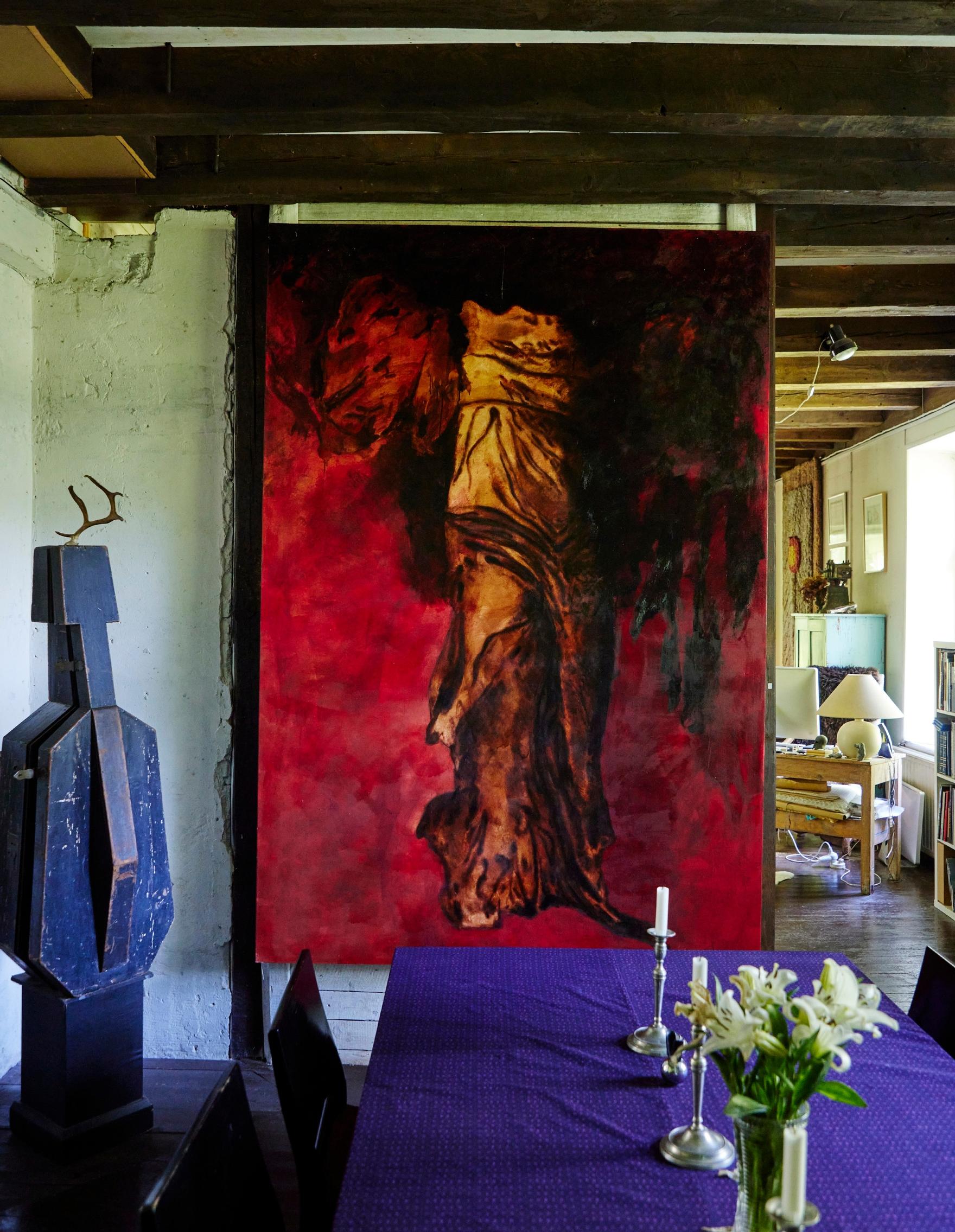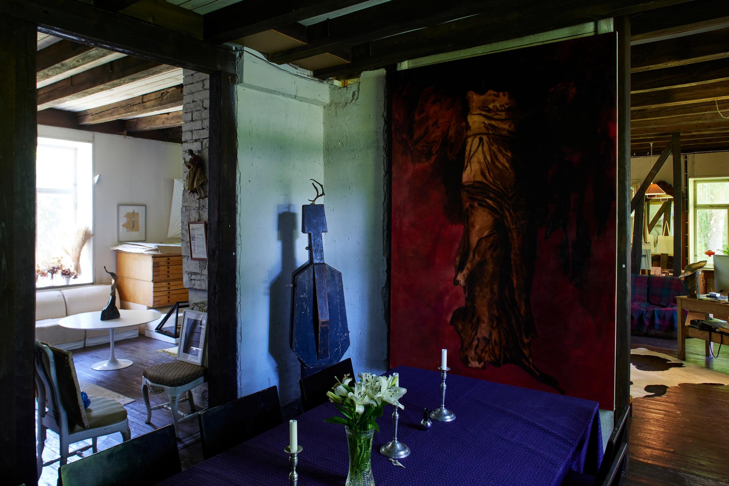 Kartanon tallissa eli taiteilijan ateljeessa näkyy räjähdysten jälkiä. Laila Pullinen tunnetaan varsin hyvin räjäytystekniikalla syntyneistä reliefeistään, vaikka tuo vaihe edustaa hänen urallaan vain lyhyttä, puolen vuoden mittaista jaksoa.