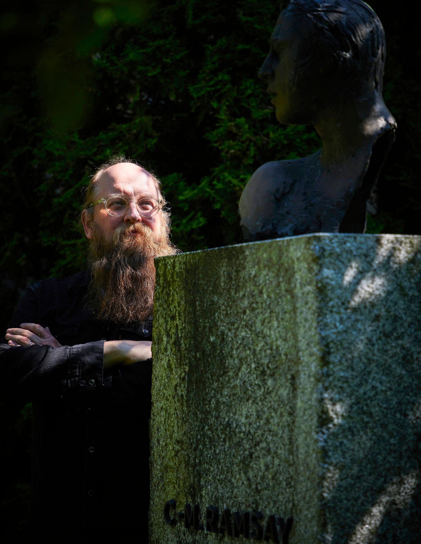 – Äiti tutki paikan maantiedettä ja sai selville, että suunnilleen tässä on kulkenut jääkauden aikaisen Yoldiameren ranta. Hän valitsi heinät itse, muokkasi maan käsivoimin ja katerpillarilla. Ja odotapa hetki… Nyt alhaalta tulee pieni tuulenvire. Eikö olekin kuin oikean meren rannalla, museonjohtaja Jean Ramsay tunnelmoi.