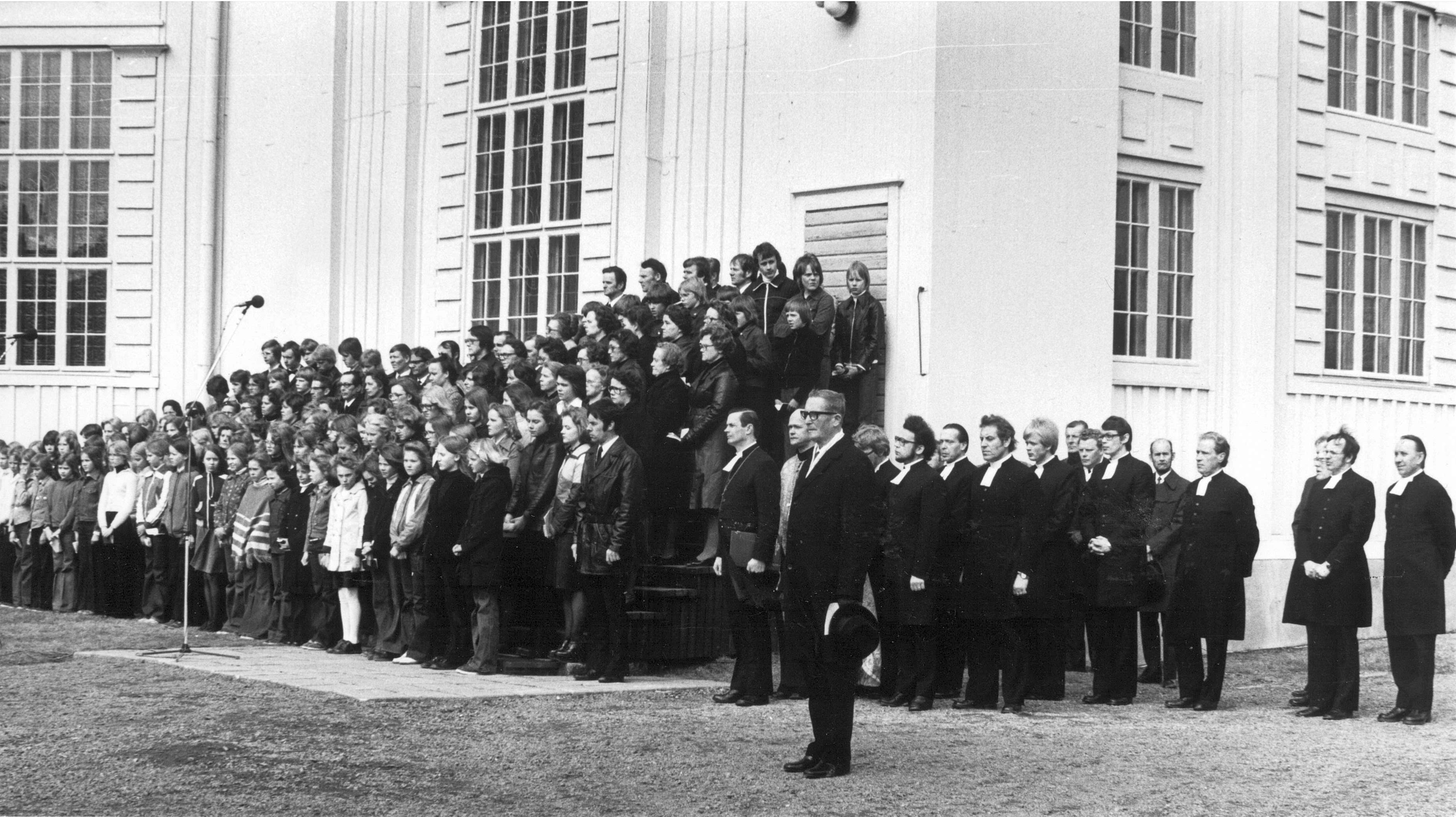 Kirkon ympärille kerääntyi 5000 ihmiset joukko. Presidentti Kekkosen, maaherran ja kirkollisten paimenten johdolla asetuttiin hiljentymään.