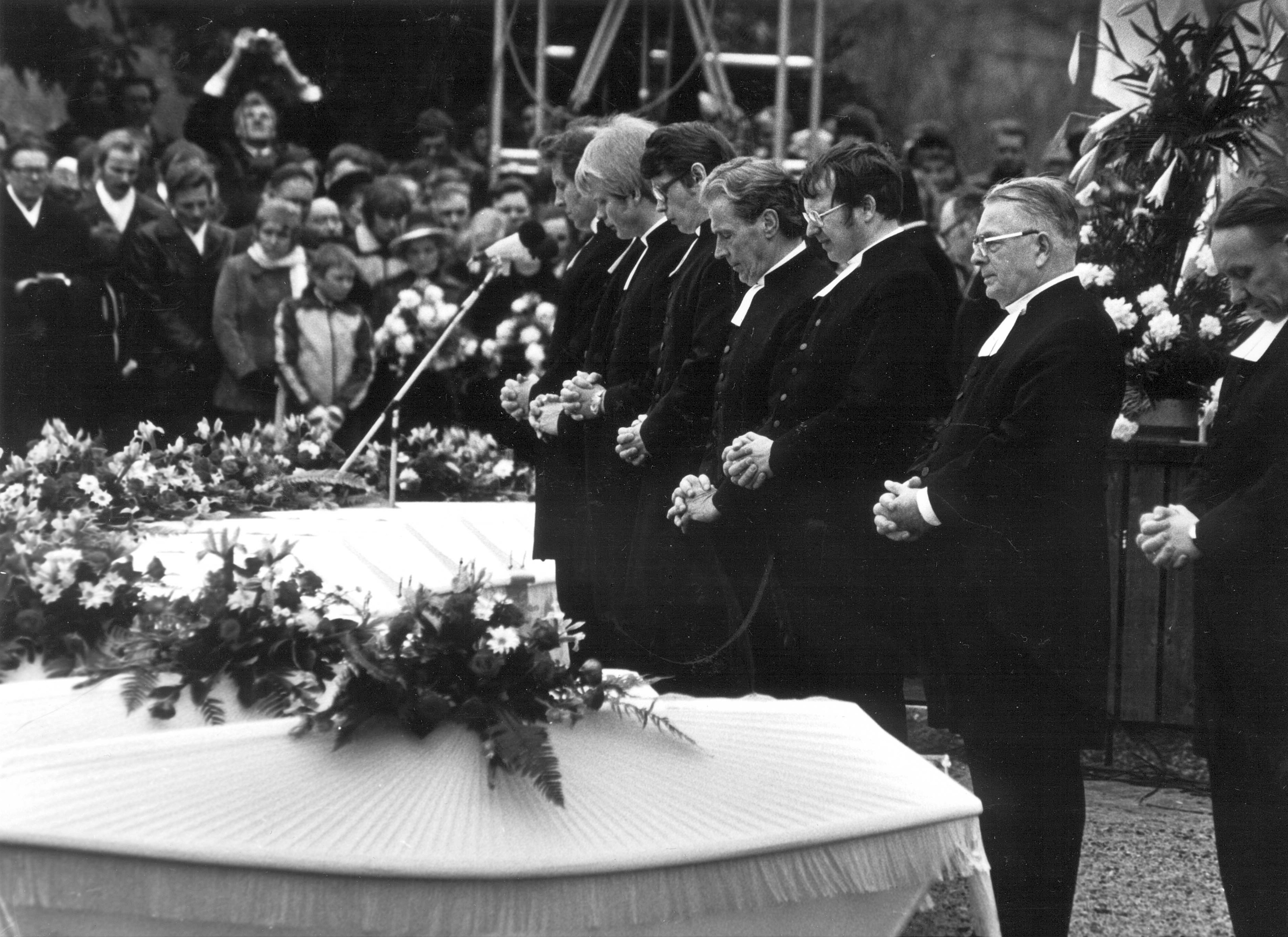 Koko Suomi seurasi televisioruudusta, kun räjähdyksessä menehtyneet lähetettiin kirkon edustalla siunauksin ja viimeisin tervehdyksin viimeiselle matkalleen. Lehtikuvaajat kuvasivat, lehtitoimittajat tallensivat.