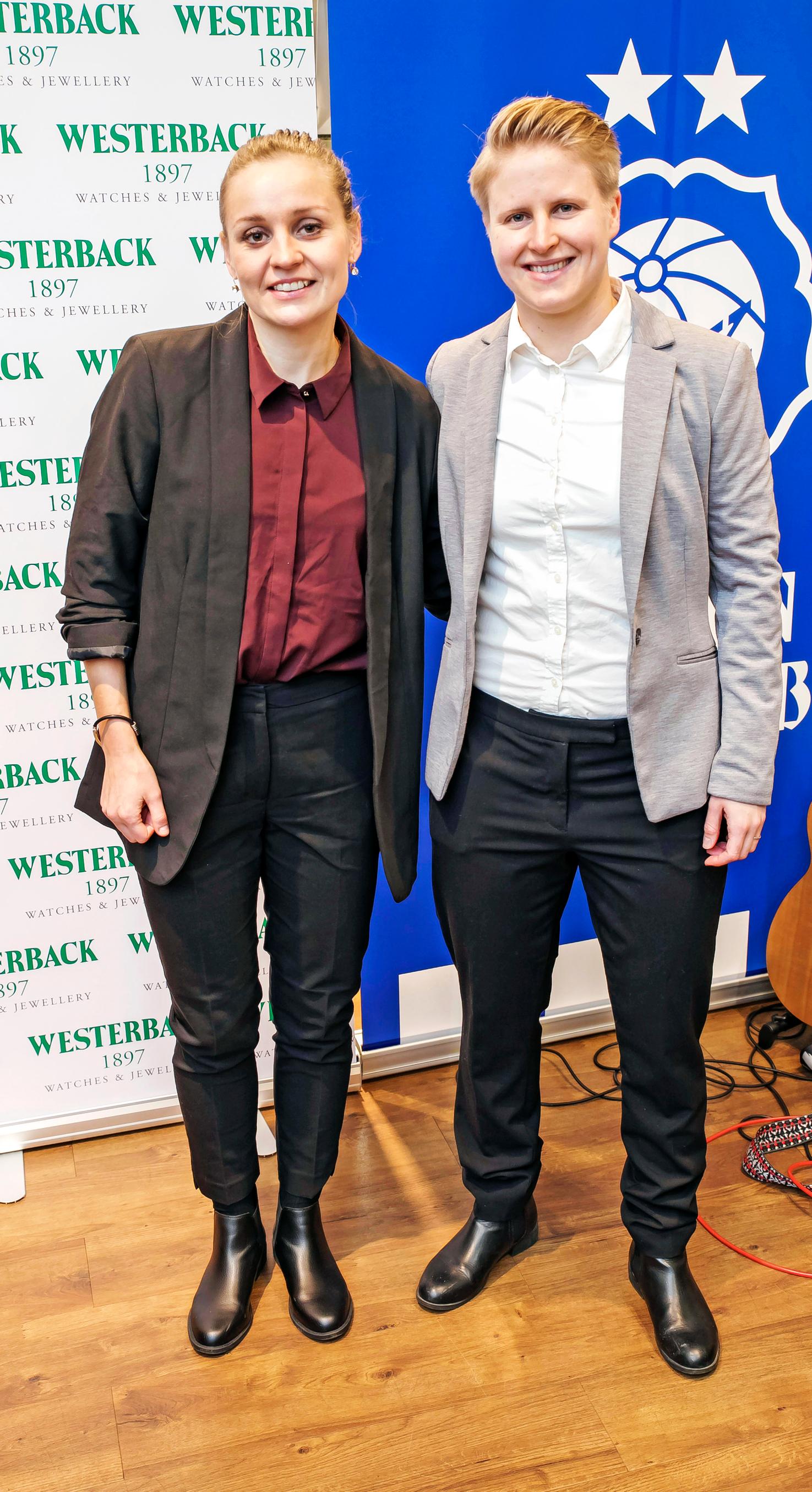Tuoreet HJK:n naisten Suomen mestarit Linda Ruutu ja Essi Sainio iloitsivat tittelistään. – Meillä oli koko kauden ajan luottavainen olo, ja tämä oli hyvän työn tulos, jalkapalloilijat sanoivat.