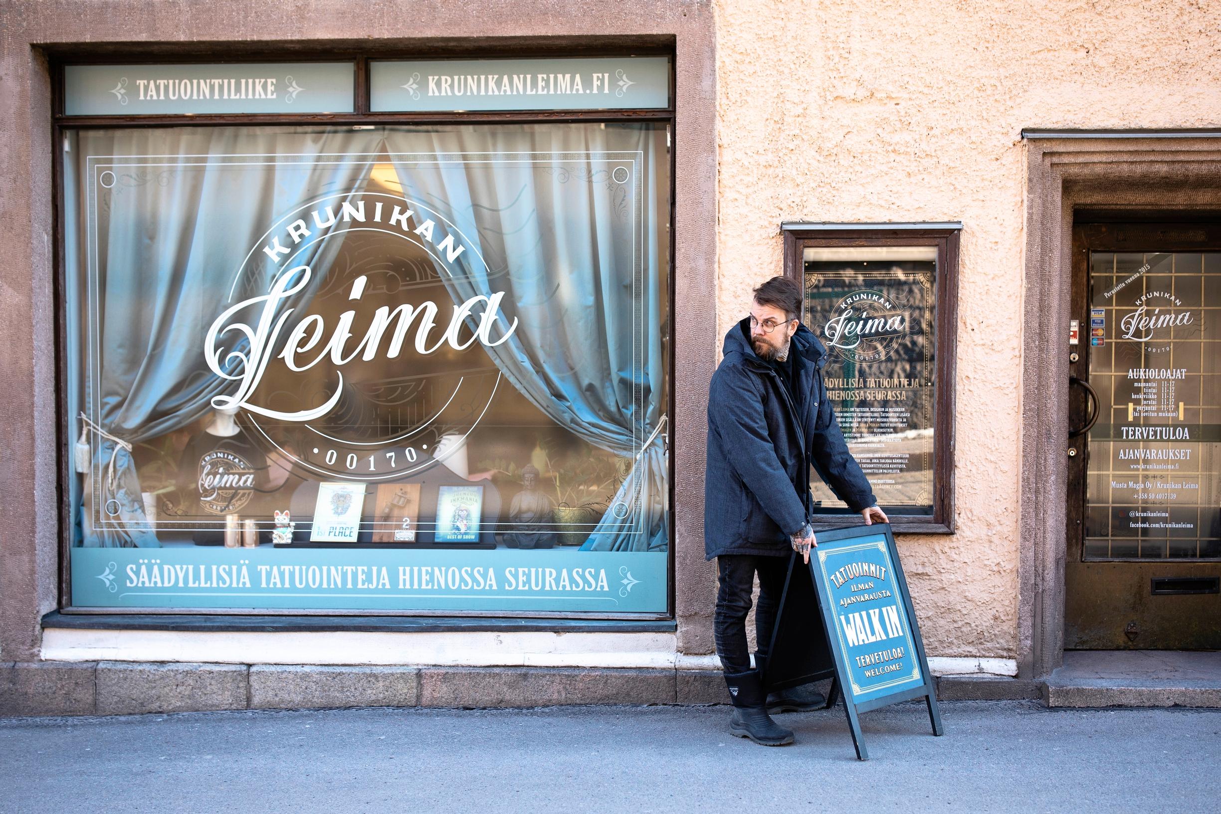Tatuointiliike Krunikan Leiman perustaja Ilari Musta tuli alalle kymmenen vuotta sitten. Vasta tuolloin, 35-vuotiaana, hän otti ensimmäiset tatuointinsa.
