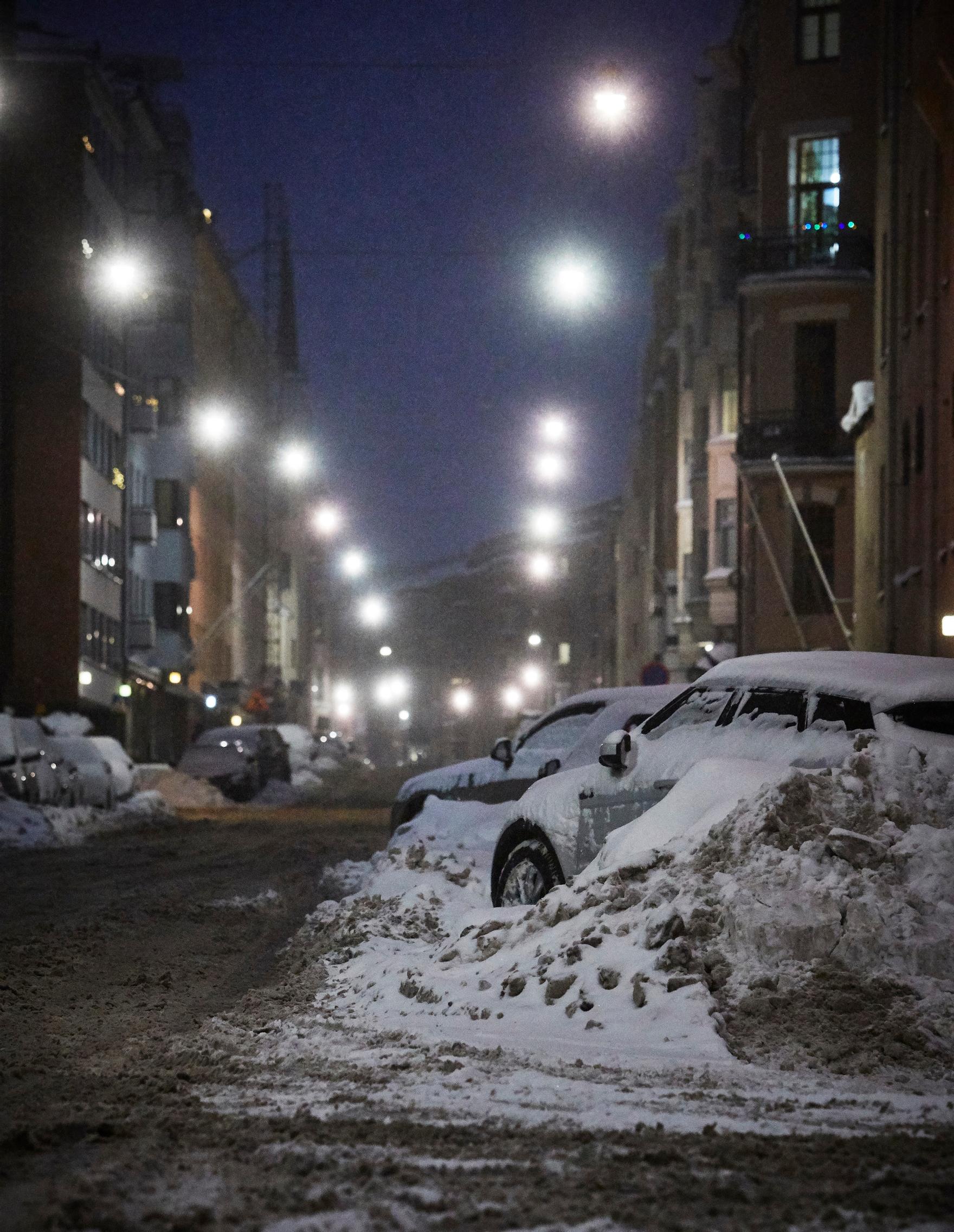 Helsingin Ullanlinnassa vallitsee tammikuisena aamuna ennusteiden mukainen lumi-inferno. Teiden aurauksen vuoksi katujen varsille pysäköityjen autojen eteen on kasautunut vaikuttavia lumipenkkoja. Jalkakäytävät ovat tukossa pehmeästä lumimuhjusta, töihinsä kiiruhtavat kaupunkilaiset koikkelehtivat paksussa lumessa parhaansa mukaan.
