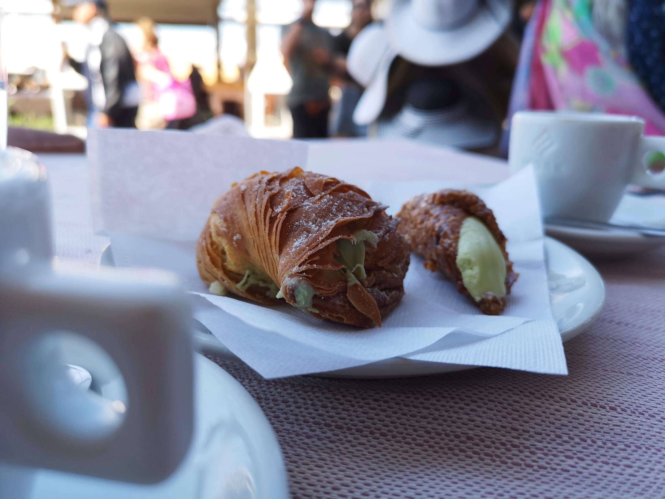 Sisiliassa syödään cannolia ja Napolin alueella sfogliatellaa, Amalfin aluella molempia. Ricottaa täynnä oleva lehtevä filotaikinainen simpukka on jööti, jonka nauttiminen jurmauttaa mahanpohjan tukkoon, kuten myös kovempi cannolirulla. Jos löydät, ota pienenä versiona, jollaiset löytyvät molemmista herkkupaloista esimerkiksi Sorrenton Marina Piccolon ikiaikaisesta Caffetteria Rucciosta.