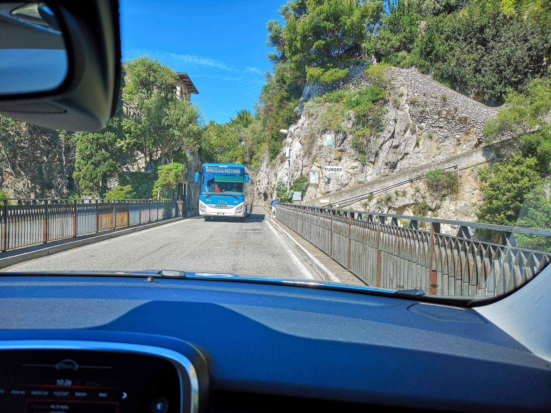 Sillä varsinaisella Amalfin tiellä niitä näkymiä ovat rehellisyyden nimissä myös muut tulleet katsomaan, eikä ruuhkilta voi välttyä. Yllättävä käänne voi tiellä kohdata muunkin kuin mutkan muodossa.