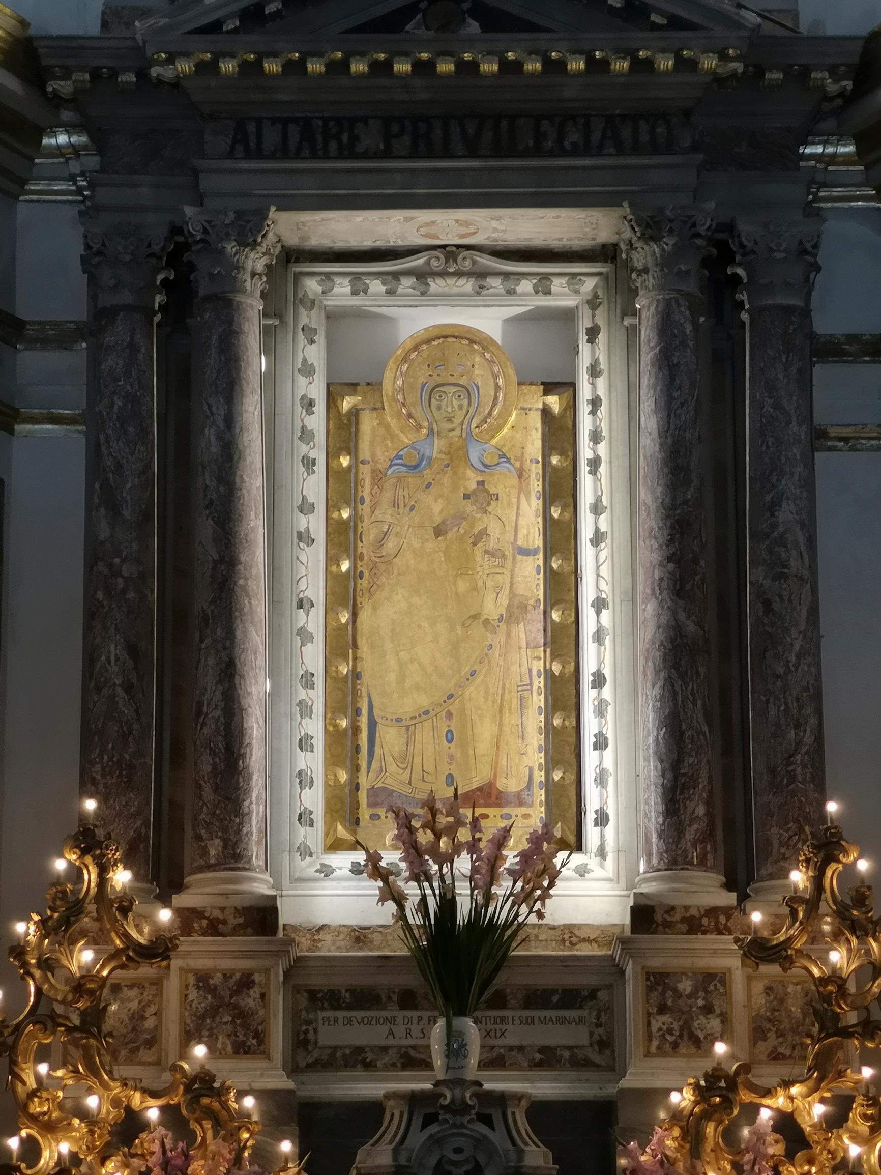 Yksi kirkko kuuluu jokaiseen reissuun. Amalfin kierroksella valinta kohdistuu itseoikeutetusti Positanon pieneen Santa Maria Assunta -kirkkoon, jonka keramiikkapäällysteinen kupoli näkyy kaikkialle kaupungissa. Pääalttarin tauluna on harvinaisempi aihe, madonna. Se on täällä 1200-luvulla maalattu ”Musta Madonna”. Tarun mukaan se on jätetty Positanoon laivasta rannalle, jotta tyveneen juuttunut alus olisi saanut tuulta alleen. Illalla hengellisen päivän voi täydentää Vesuviuksen omasta rypäleestä lacryma christi del vesuviosta (Kristuksen kyyneleet) tehdyllä viinilasillisella. Sen tarina: paholainen karkasi taivasten valtakunnasta ja vei sieltä mukanaan palasen, jonka hän tipautti Amalfille, ja tuota menetettyä omaisuutta Kristus sitten ikuisesti kyynelehtii, synnyttäen näin parhaan mahdollisen maaperän alkoholin tuottamiselle…