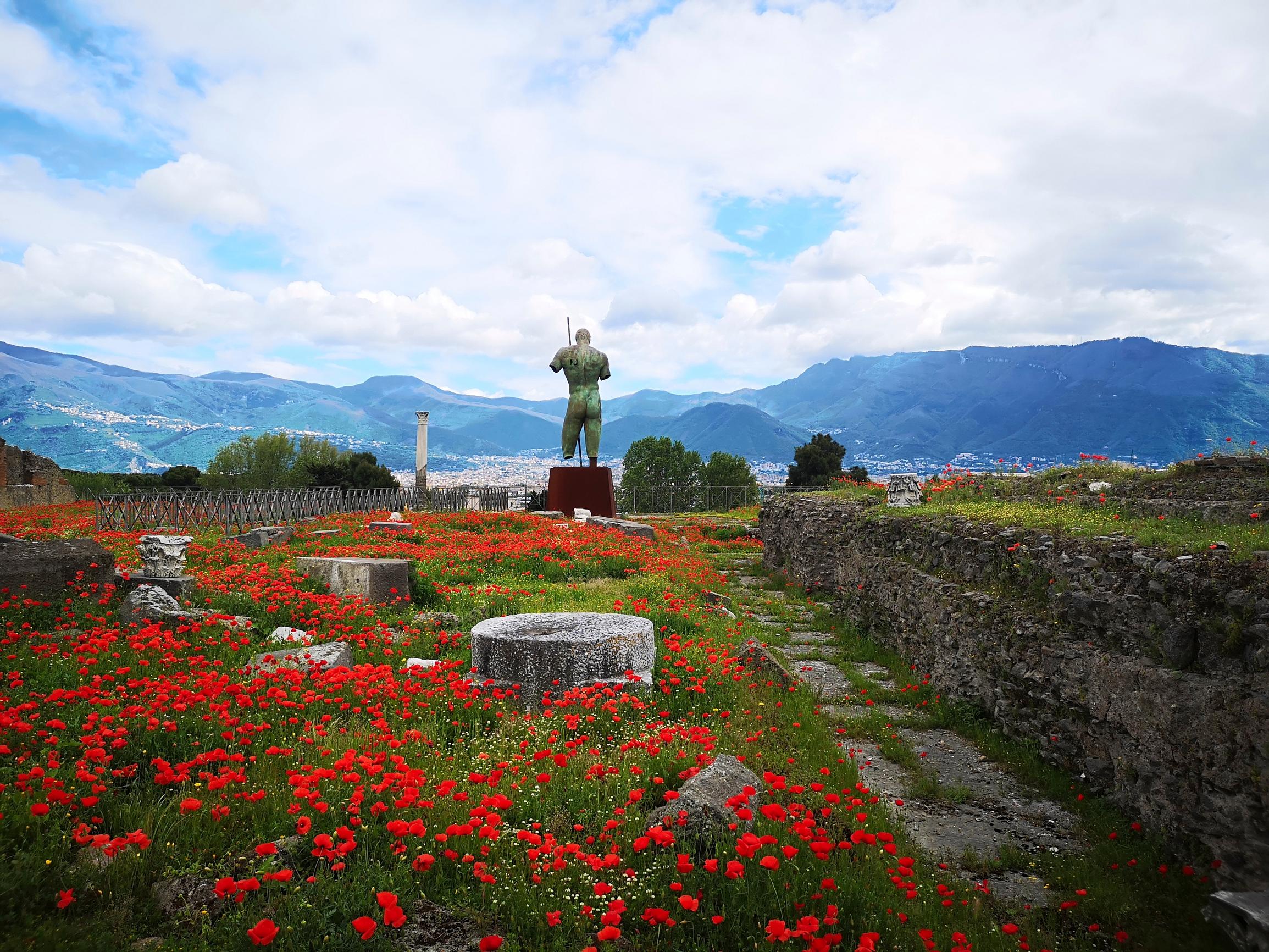 Matkalla Amalfille erinomainen pysähdyskohde on Pompejin rauniokaupunki. Vesuviuksen purkauksessa vuonna 79 hautautunut roomalainen kaupunki on kaivettu esiin enimmiltä osin ja se on yksi niistä nähtävyyksistä, jotka ovat myös koettaessa vaikuttavia. Vesipullo ja kartta mukaan – katuja kaupungissa on loputtomasti. Auton saa pysäköityä pääsisäänkäynti Porta Marinan vieressä oleviin yksityisiin parkkipaikkoihin kohtuulliseen hintaan, mutta vasta, kun viisi euroa kerrallaan tippuvista tarjouksista on kyllin monta kertaa loukkaantunut (ensimmäinen tarjous kolmesta tunnista oli 40 euroa, mutta lopulta se maksoi 10).